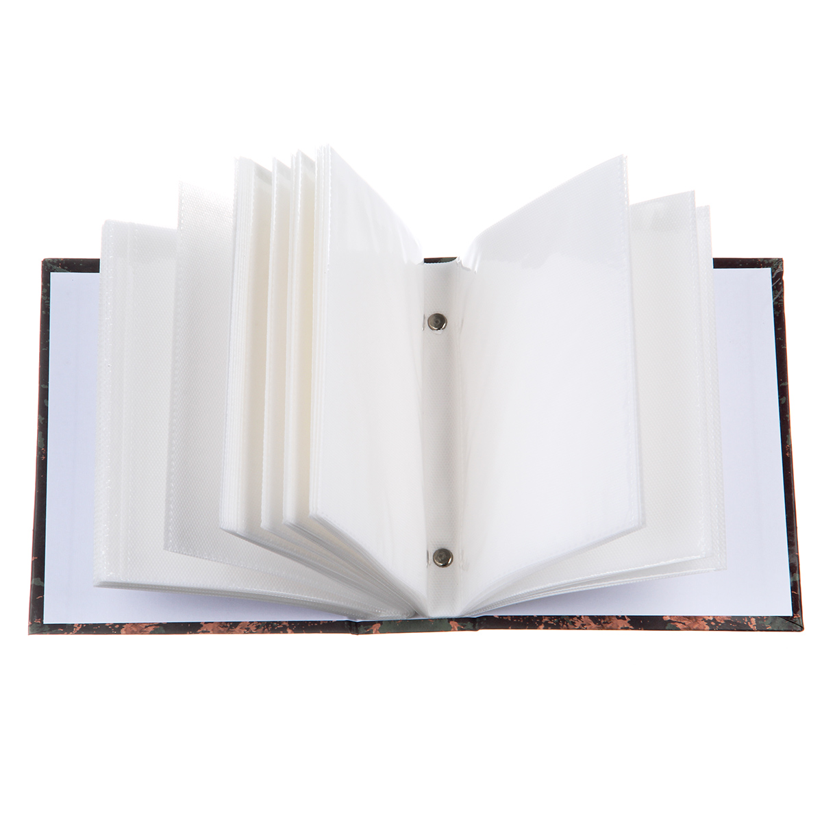 Стильный и красивый альбом вмещает в себя 100 фотографий формата 10х15 см. Пластиковые кармашки, 50 листов, скрепленных болтами, по одной фотографии на странице.