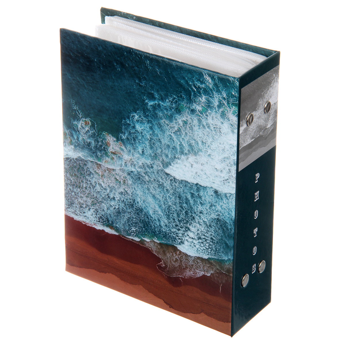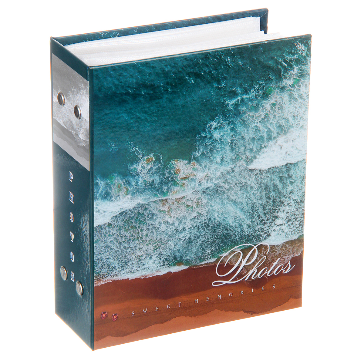 Стильный и красивый альбом вмещает в себя 100 фотографий формата 10х15 см. Пластиковые кармашки, 50 листов, скрепленных болтами, по одной фотографии на странице.