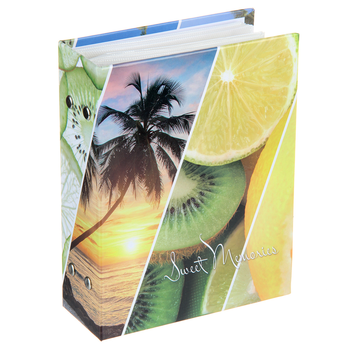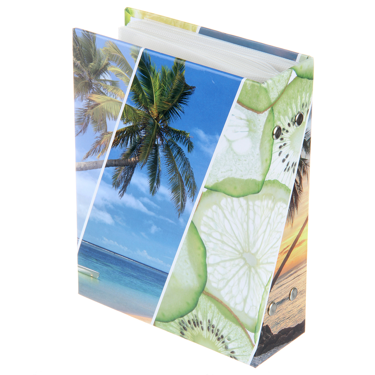 Стильный и красивый альбом вмещает в себя 100 фотографий формата 10х15 см. Пластиковые кармашки, 50 листов, скрепленных болтами, по одной фотографии на странице.