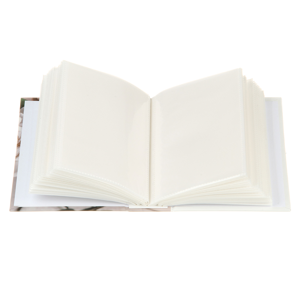Стильный и красивый альбом вмещает в себя 100 фотографий формата 10х15 см. Пластиковые кармашки, 50 листов, скрепленных высокочастотной сваркой, по одной фотографии на странице.
