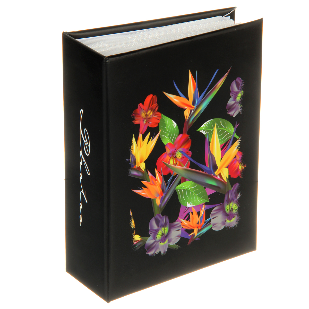 Стильный и красивый альбом вмещает в себя 100 фотографий формата 10х15 см. Пластиковые кармашки, 50 листов, скрепленных высокочастотной сваркой, по одной фотографии на странице.