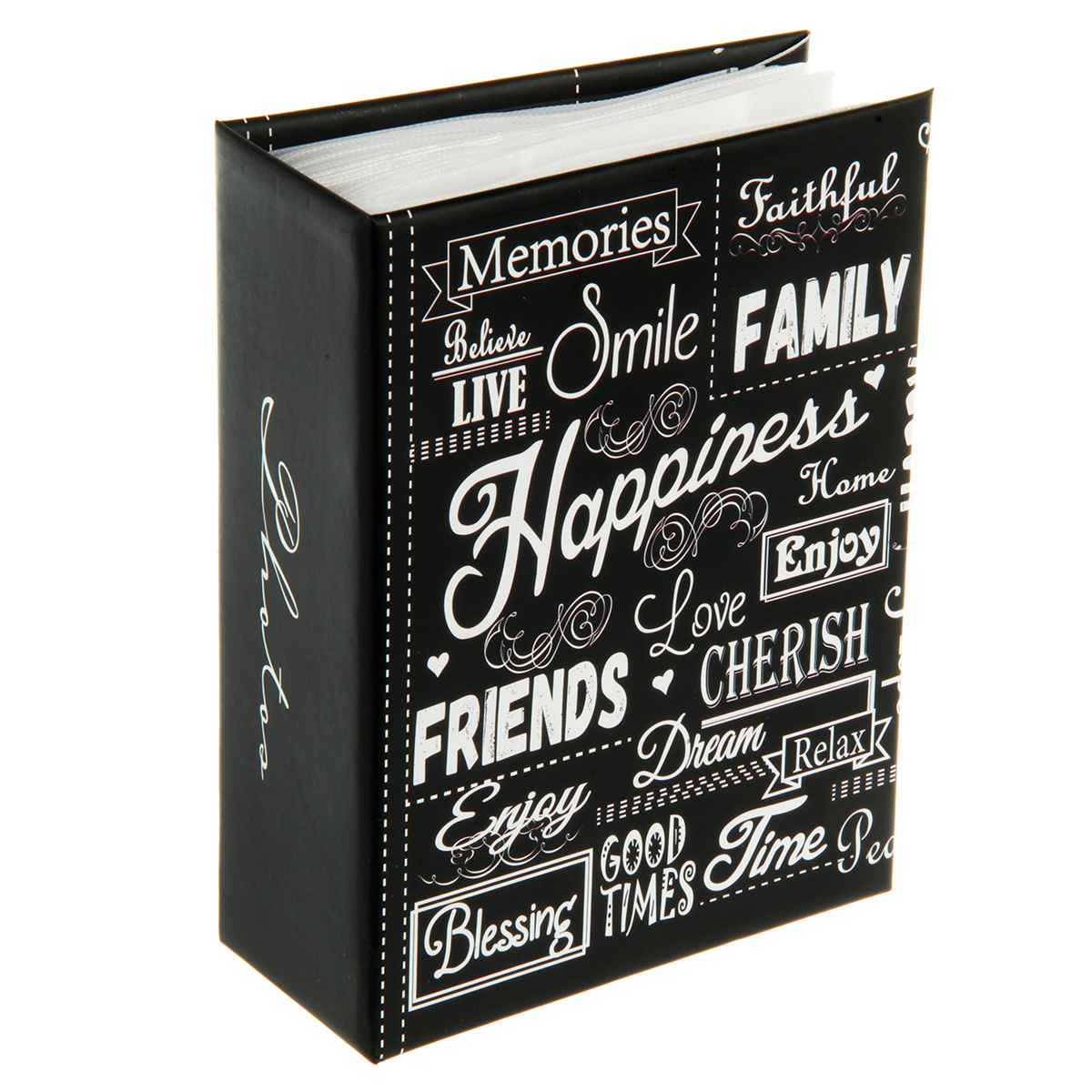Стильный и красивый альбом вмещает в себя 100 фотографий формата 10х15 см. Пластиковые кармашки, 50 листов, скрепленных высокочастотной сваркой, по одной фотографии на странице.