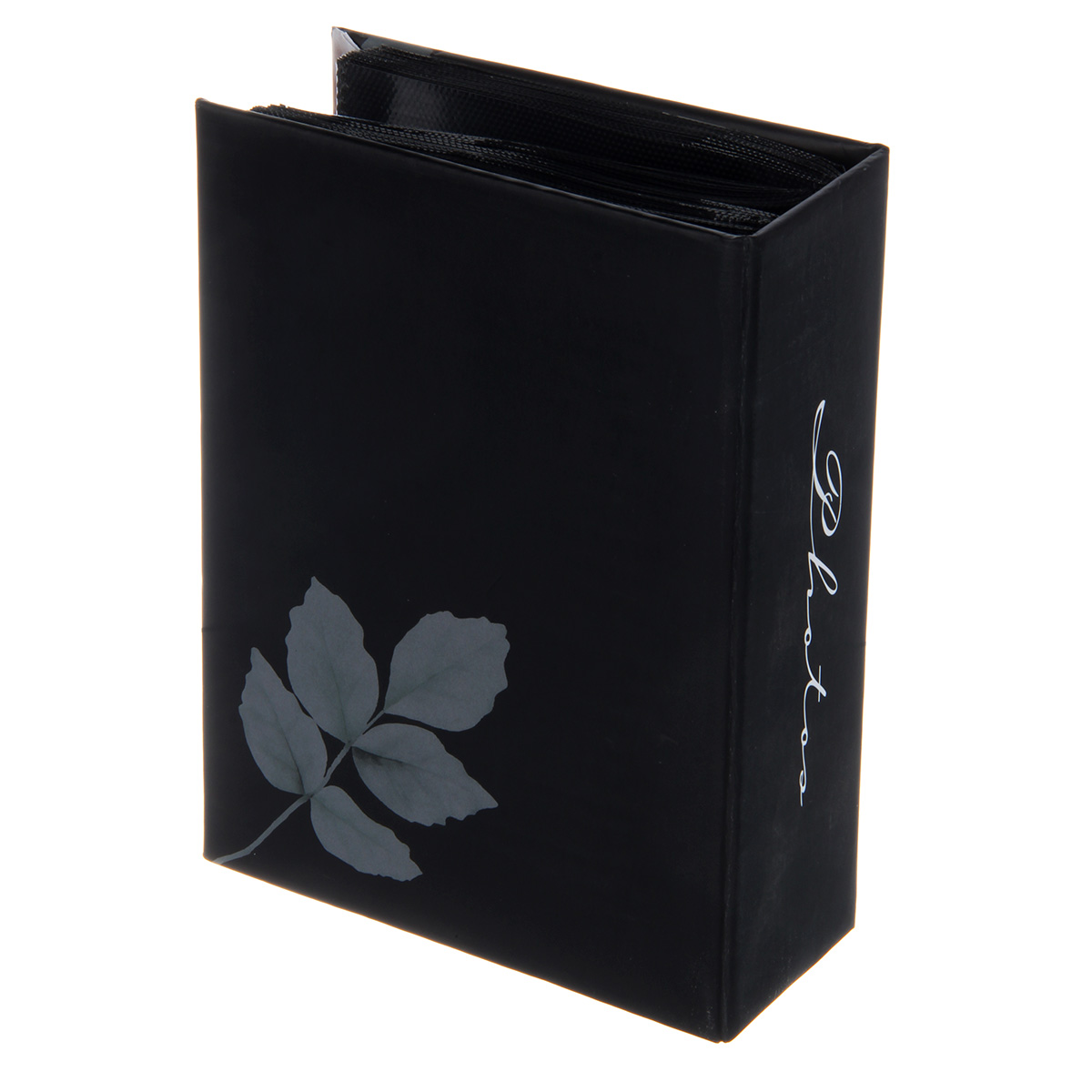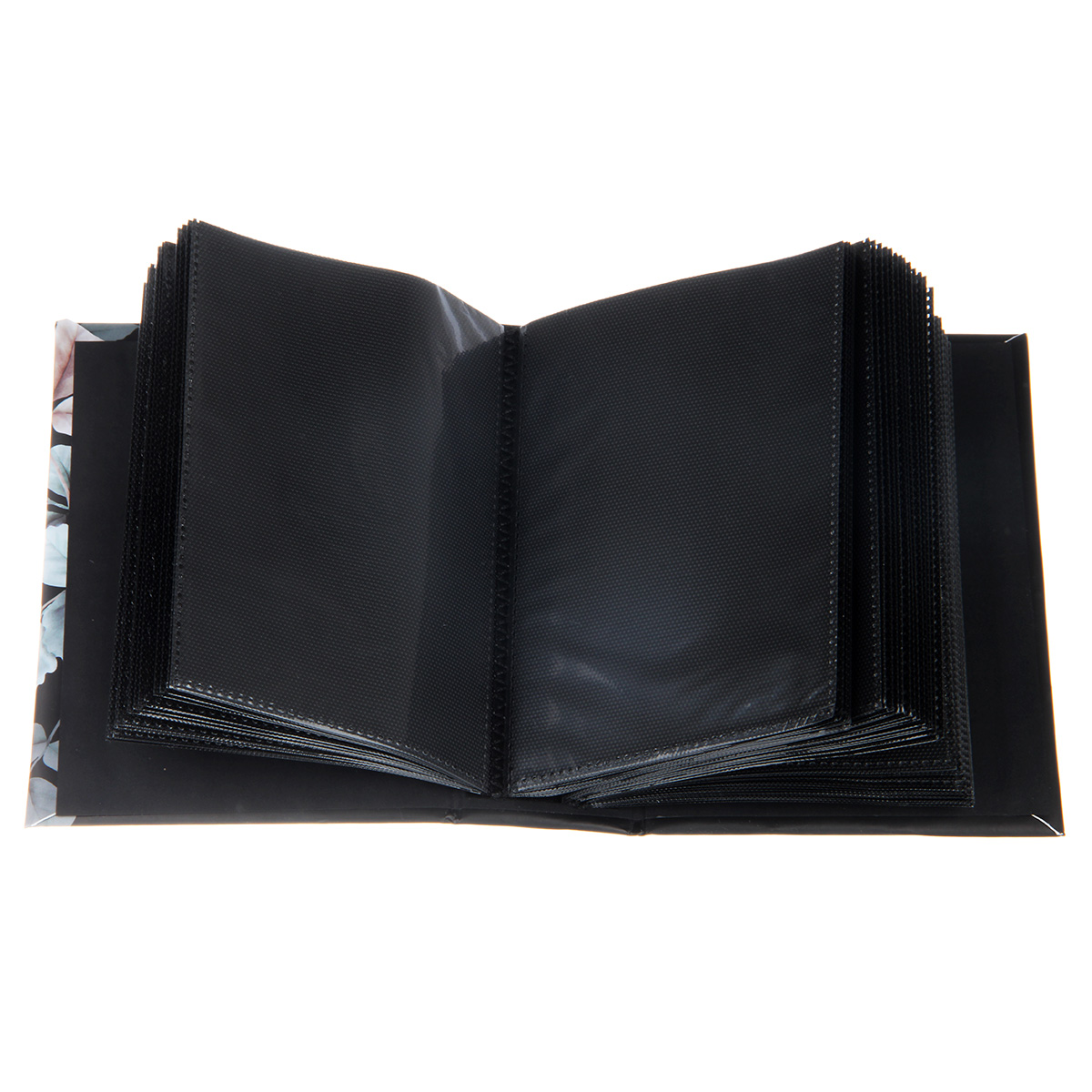 Стильный и красивый альбом вмещает в себя 100 фотографий формата 10х15 см. Пластиковые кармашки, черные страницы, 50 листов, скрепленных высокочастотной сваркой, по одной фотографии на странице.