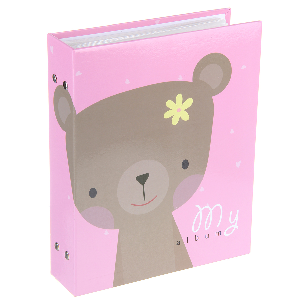 Стильный и красивый альбом вмещает в себя 200 фотографий формата 10х15 см. Пластиковые кармашки, 50 листов, скрепленных болтами, по 2 фотографии на странице.