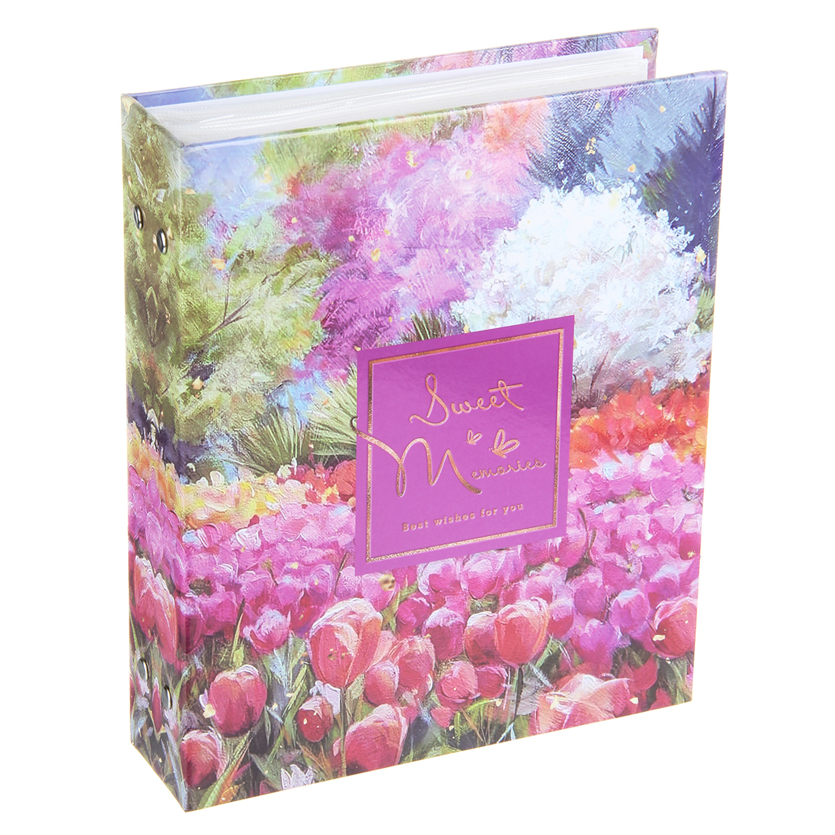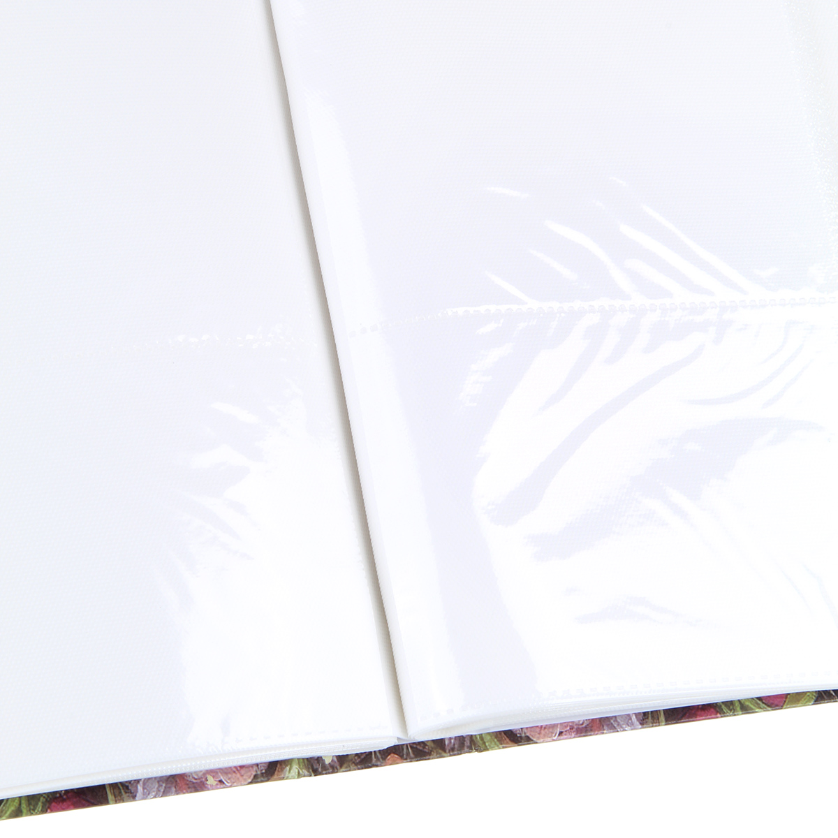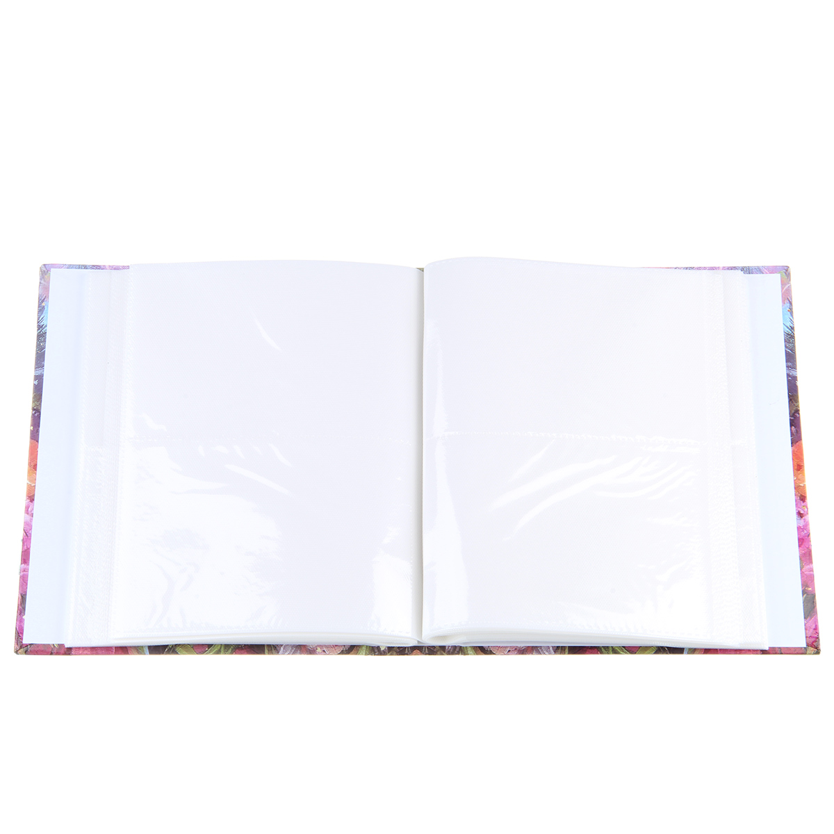 Стильный и красивый альбом вмещает в себя 200 фотографий формата 10х15 см. Пластиковые кармашки, 50 листов, скрепленных болтами, по 2 фотографии на странице.