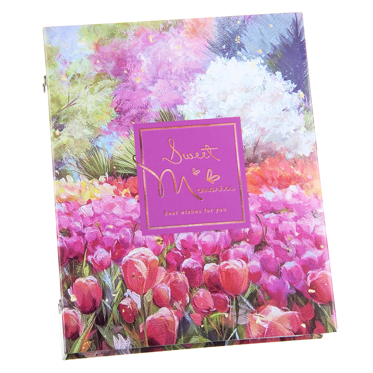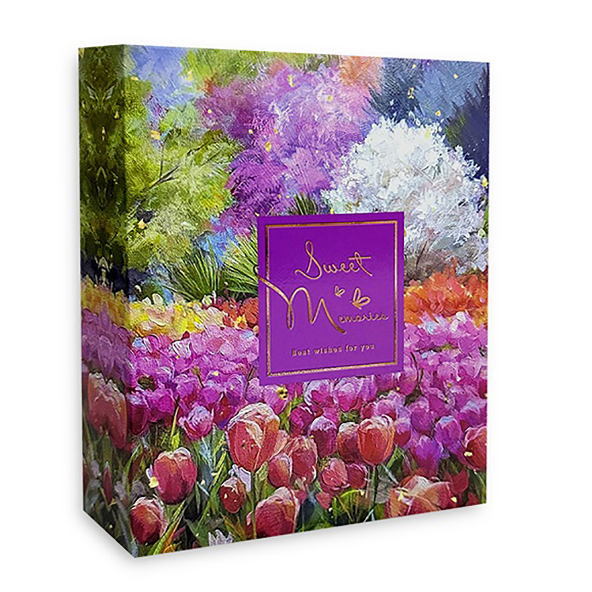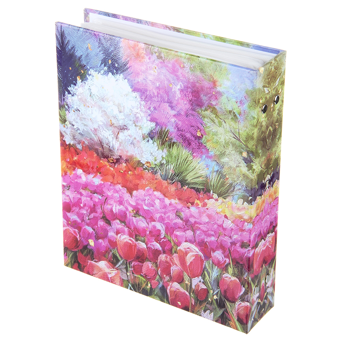 Стильный и красивый альбом вмещает в себя 200 фотографий формата 10х15 см. Пластиковые кармашки, 50 листов, скрепленных болтами, по 2 фотографии на странице.