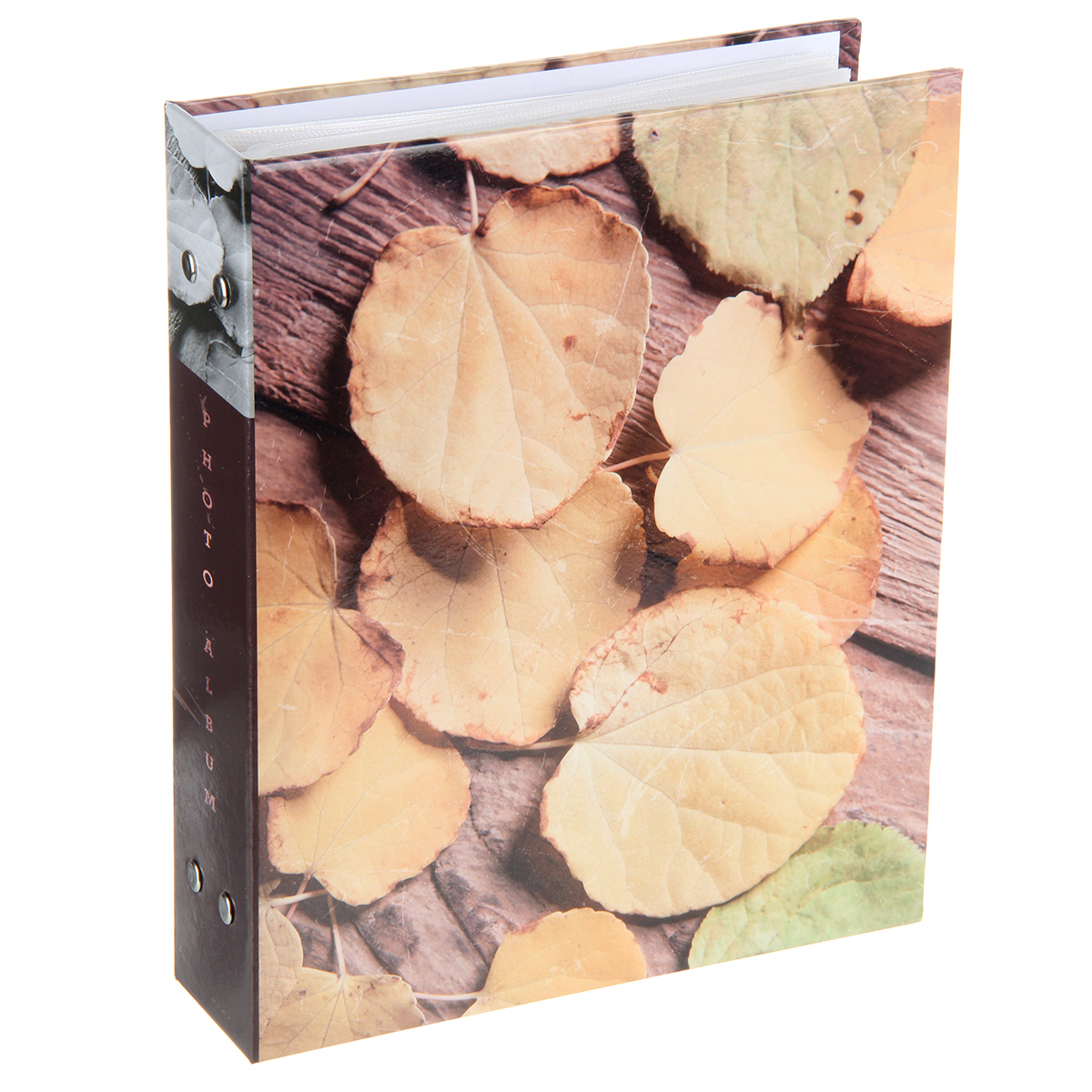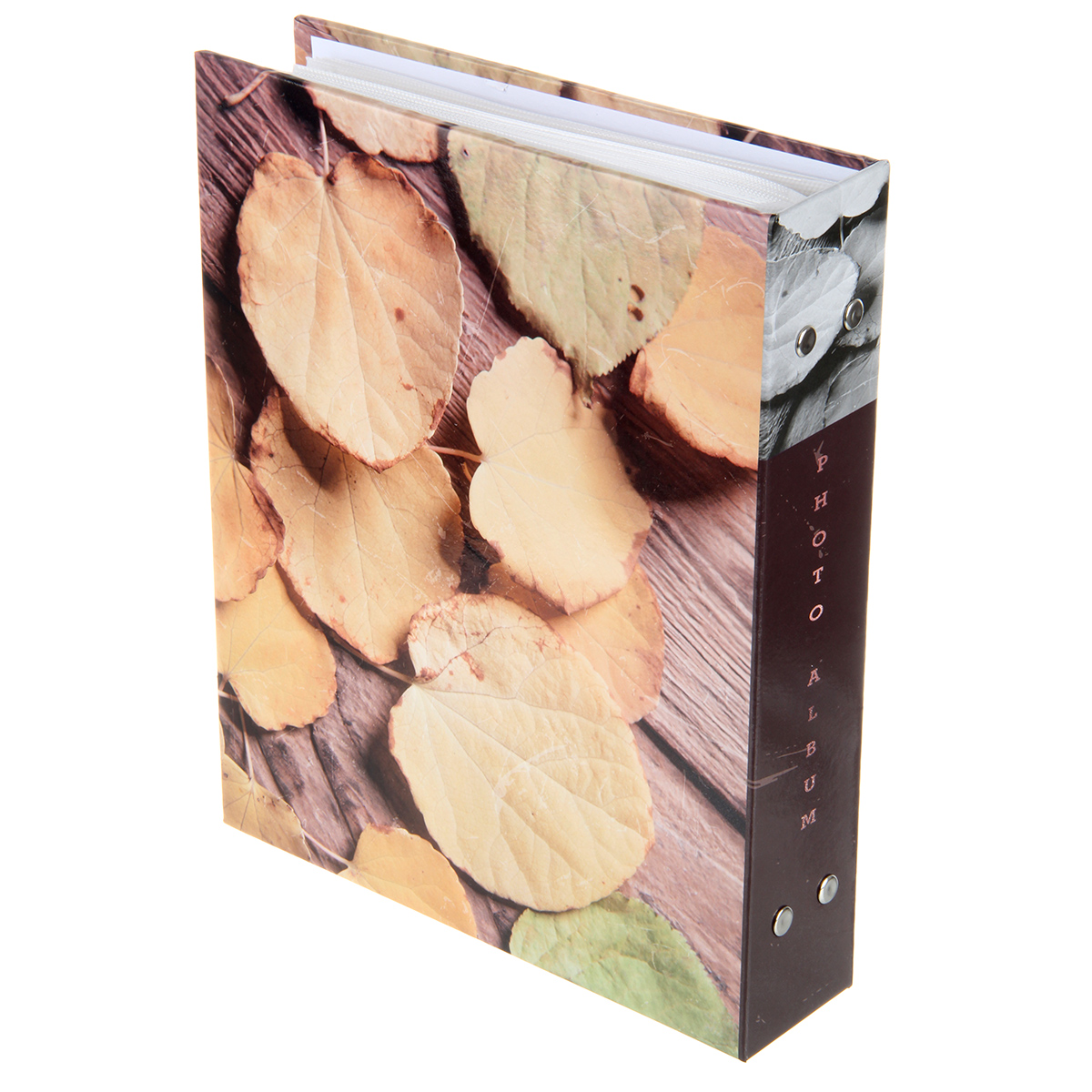 Стильный и красивый альбом вмещает в себя 200 фотографий формата 10х15 см. Пластиковые кармашки, 50 листов, скрепленных болтами, по 2 фотографии на странице.