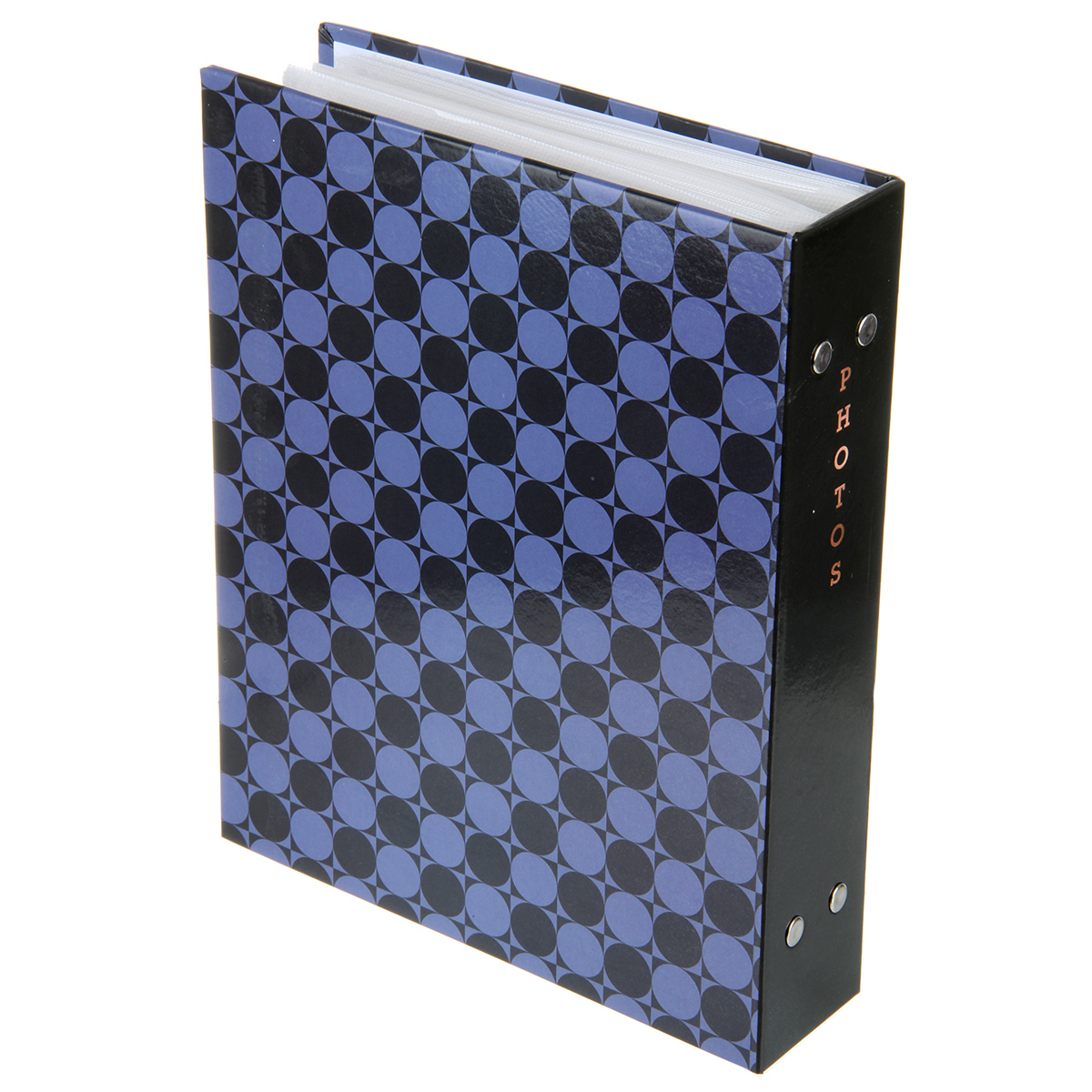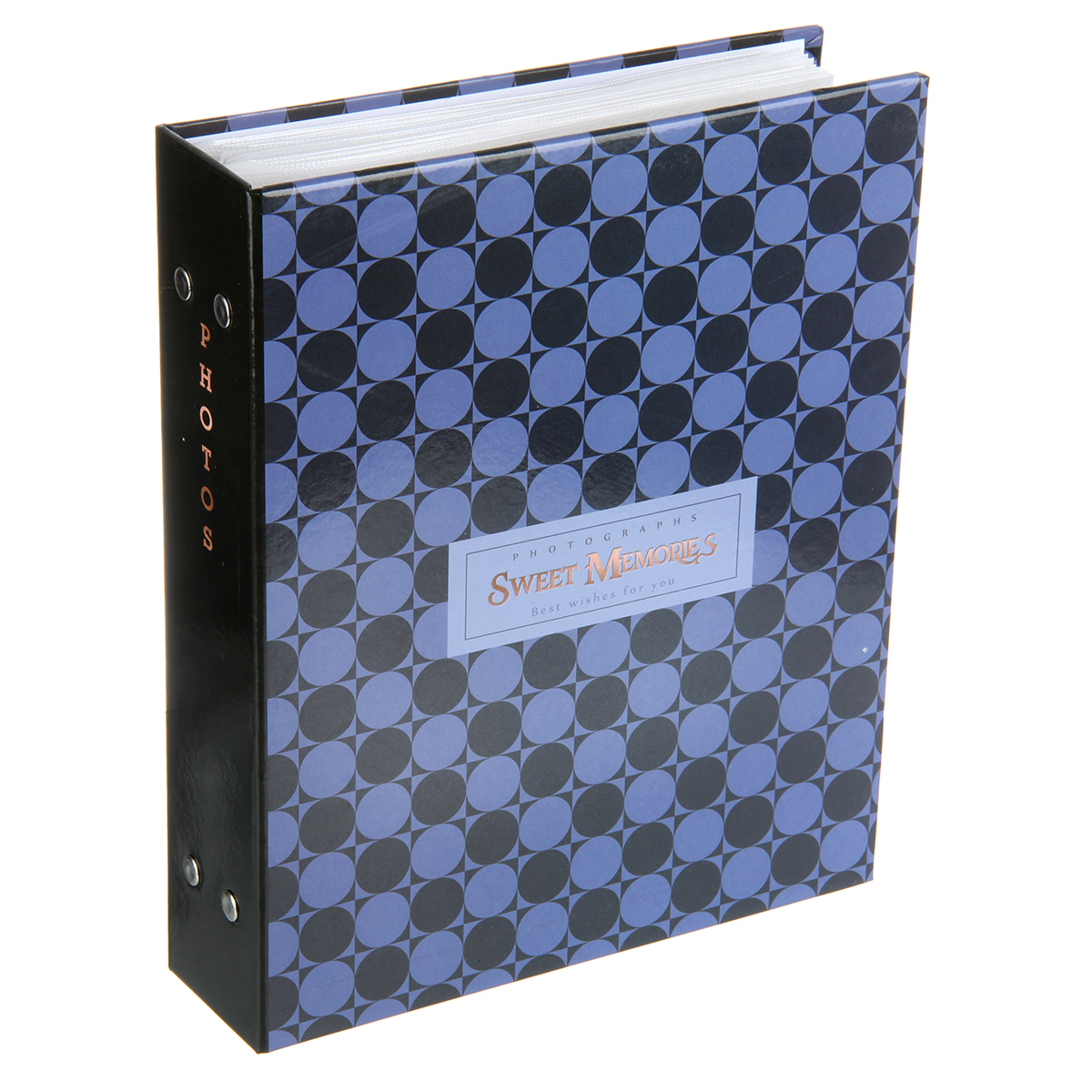 Стильный и красивый альбом вмещает в себя 200 фотографий формата 10х15 см. Пластиковые кармашки, 50 листов, скрепленных болтами, по 2 фотографии на странице.