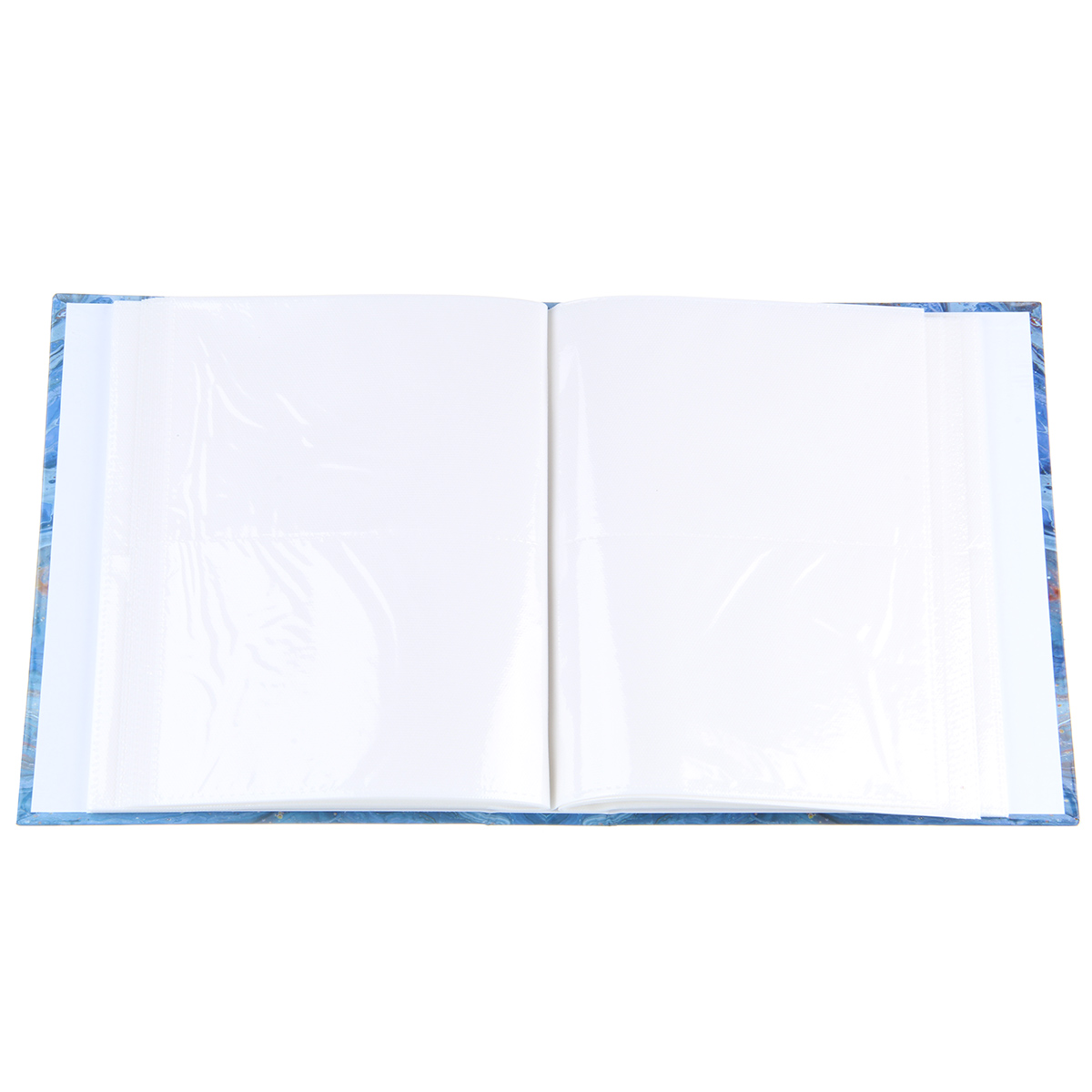 Стильный и красивый альбом вмещает в себя 200 фотографий формата 10х15 см. Пластиковые кармашки, 50 листов, скрепленных болтами, по 2 фотографии на странице.