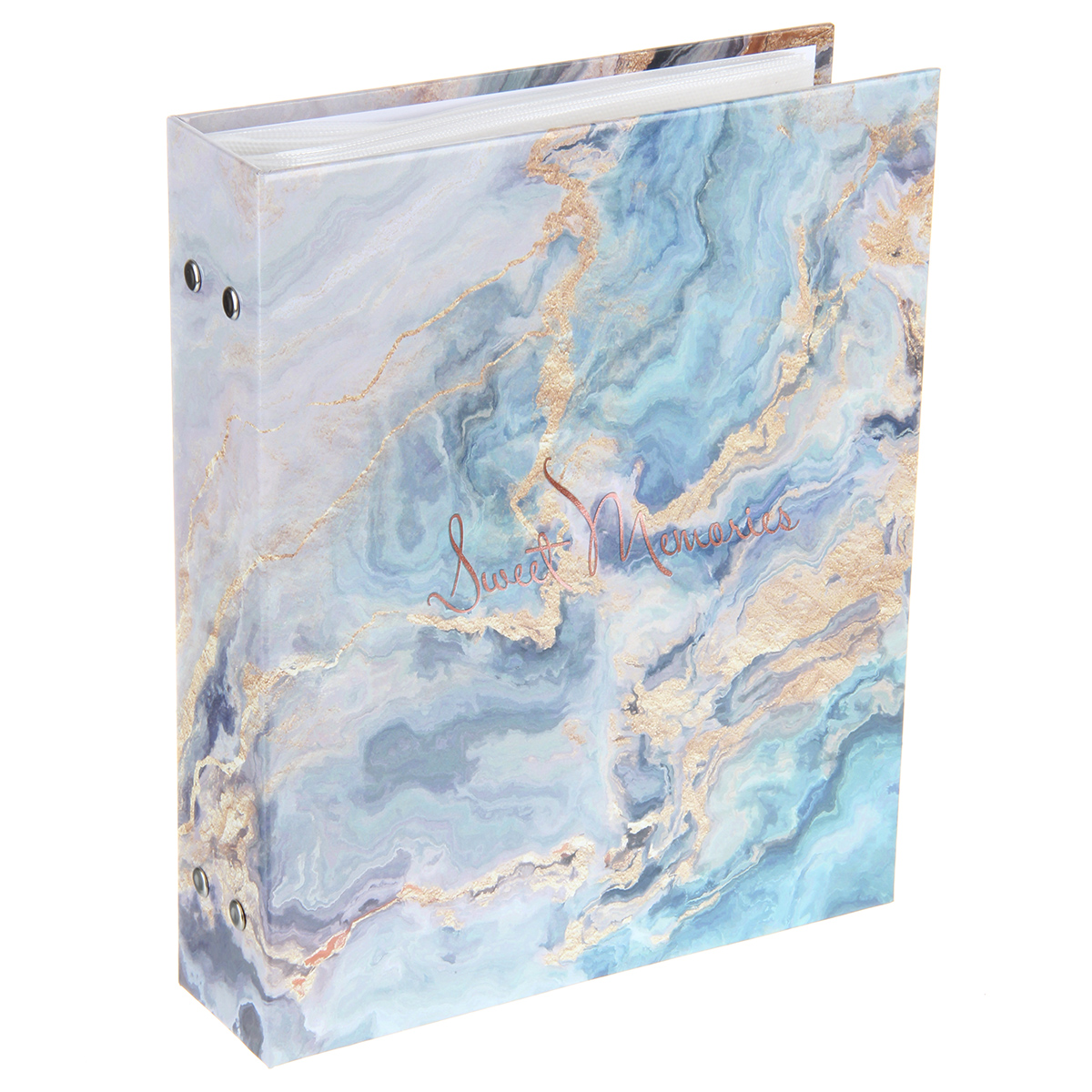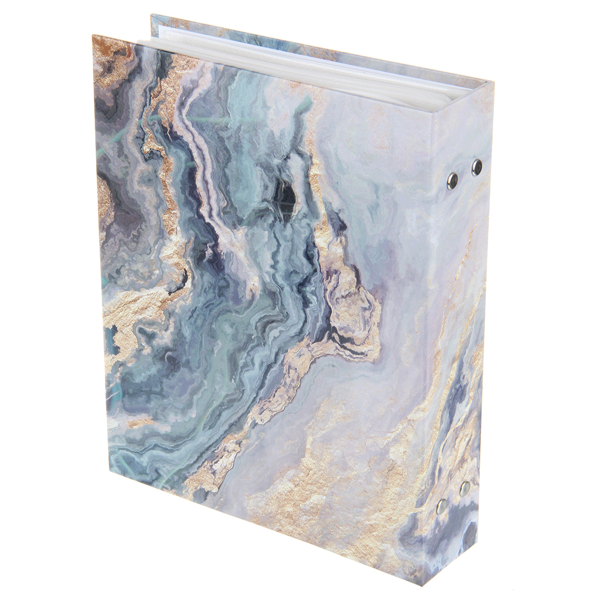 Стильный и красивый альбом вмещает в себя 200 фотографий формата 10х15 см. Пластиковые кармашки, 50 листов, скрепленных болтами, по 2 фотографии на странице.