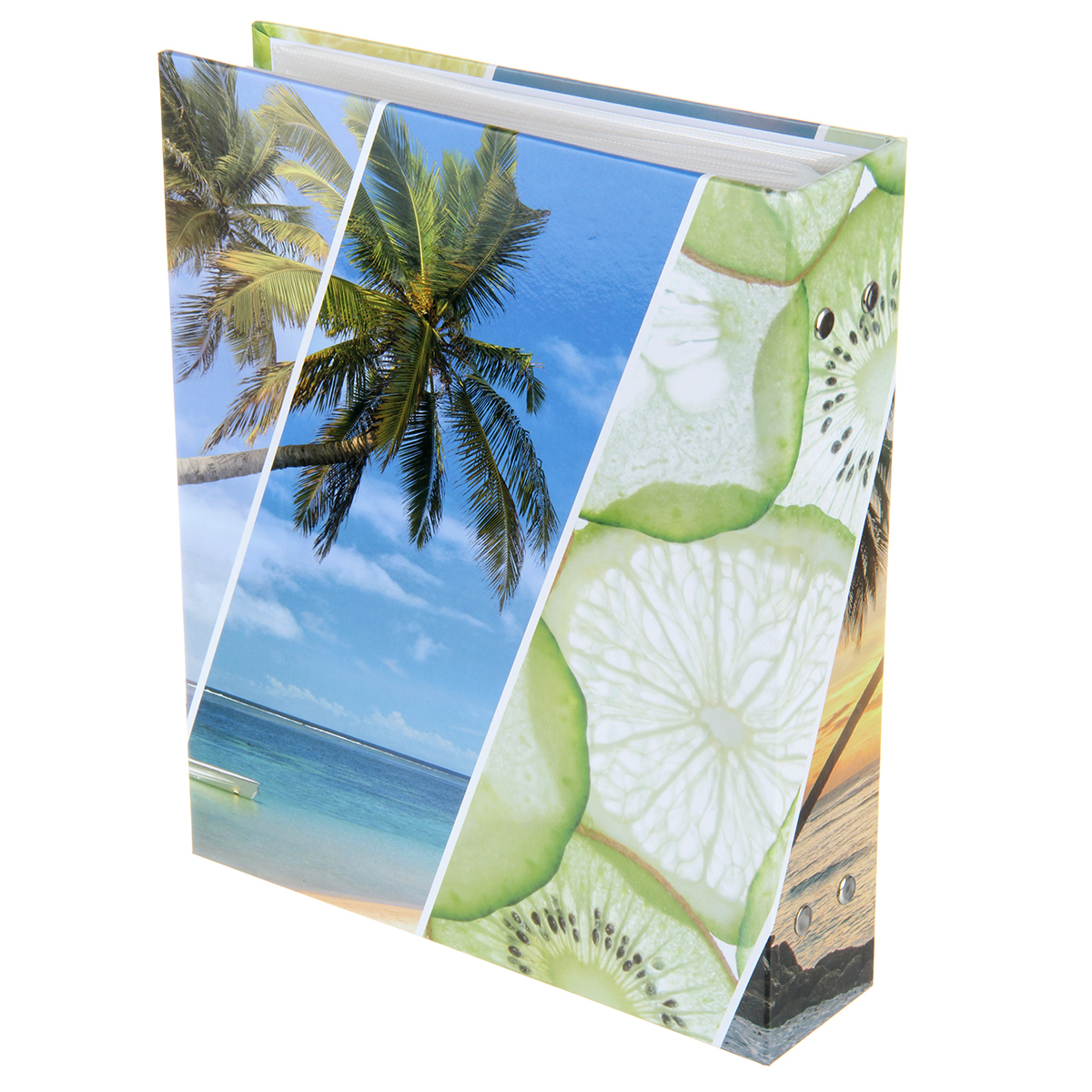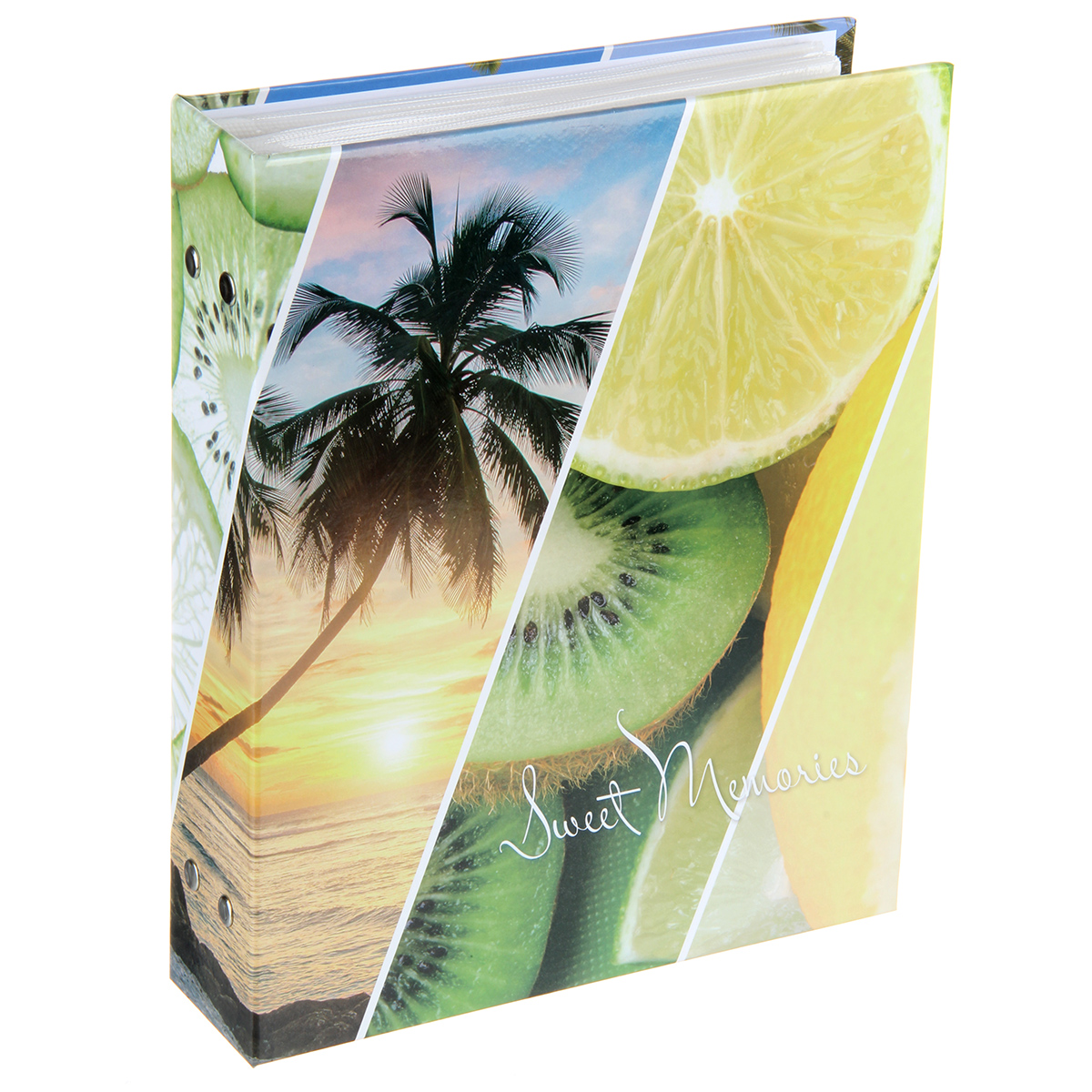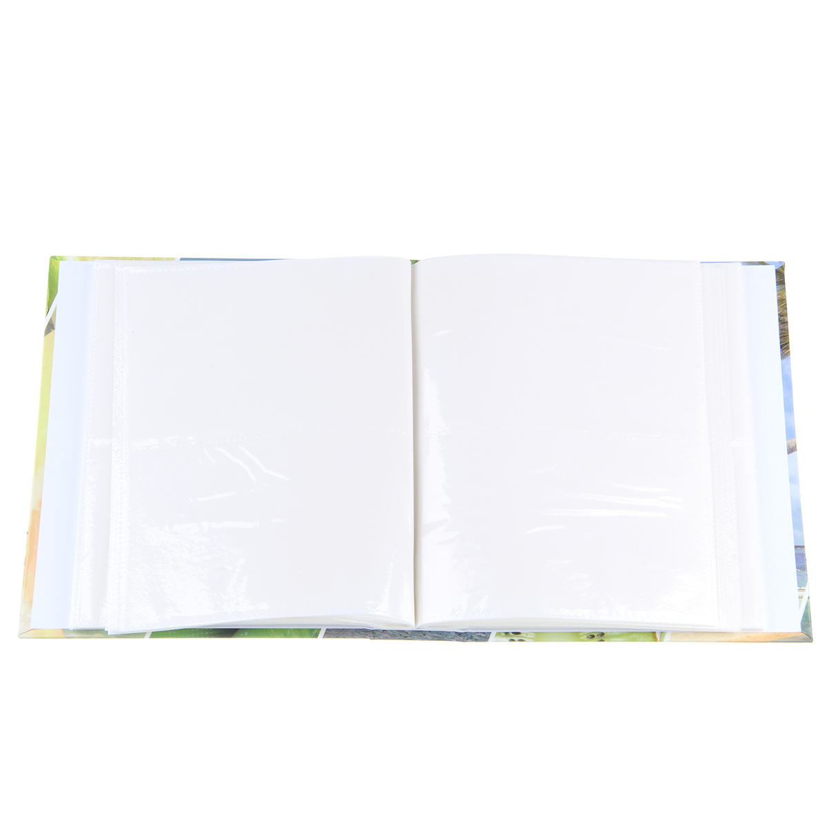 Стильный и красивый альбом вмещает в себя 200 фотографий формата 10х15 см. Пластиковые кармашки, 50 листов, скрепленных болтами, по 2 фотографии на странице.