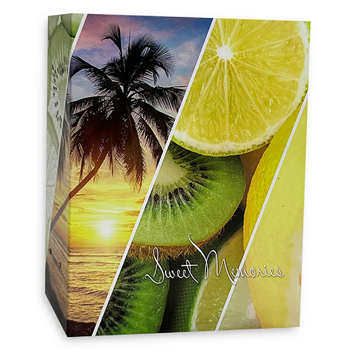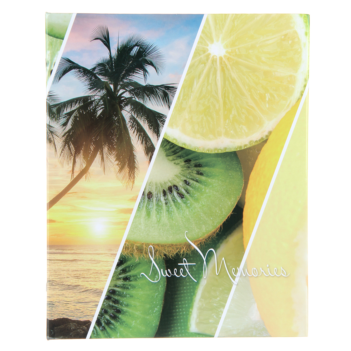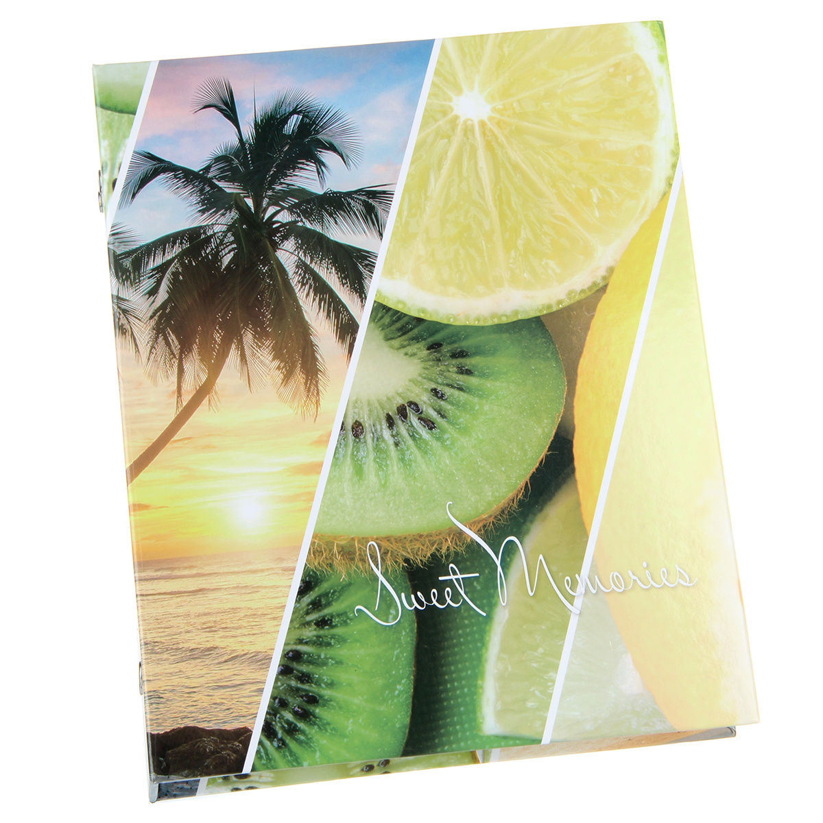 Стильный и красивый альбом вмещает в себя 200 фотографий формата 10х15 см. Пластиковые кармашки, 50 листов, скрепленных болтами, по 2 фотографии на странице.