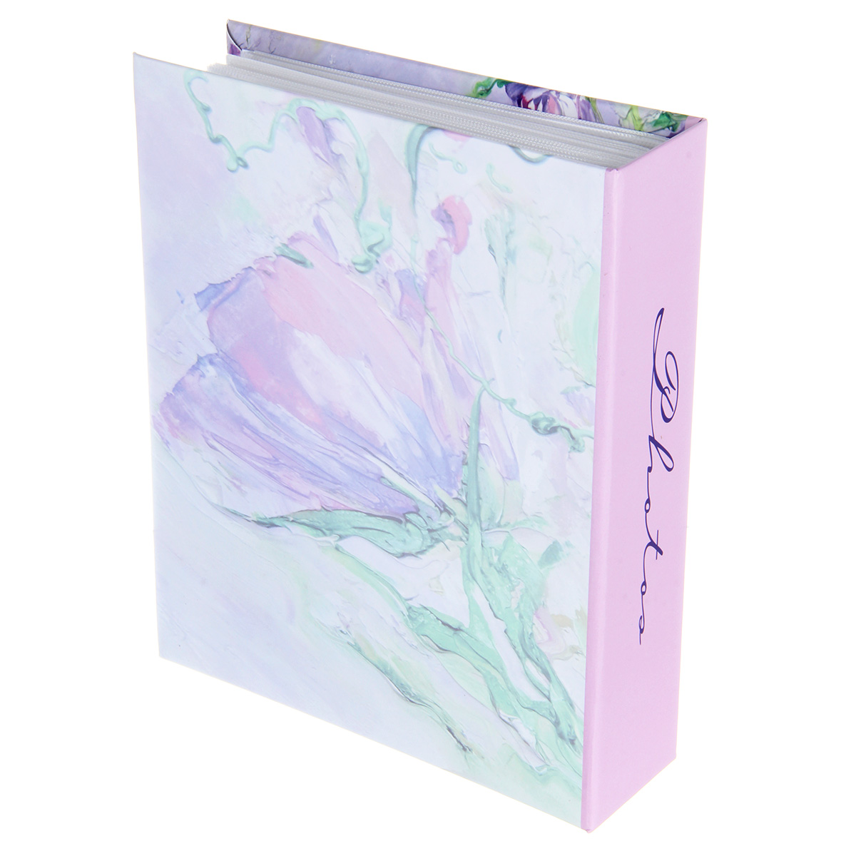 Стильный и красивый альбом вмещает в себя 200 фотографий формата 10х15 см. Пластиковые кармашки, 50 листов, скрепленных высокочастотной сваркой, по 2 фотографии на странице.