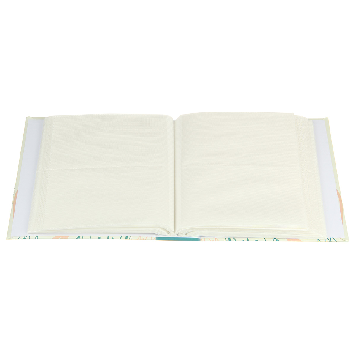 Стильный и красивый альбом вмещает в себя 200 фотографий формата 10х15 см. Пластиковые кармашки, 50 листов, скрепленных высокочастотной сваркой, по 2 фотографии на странице.