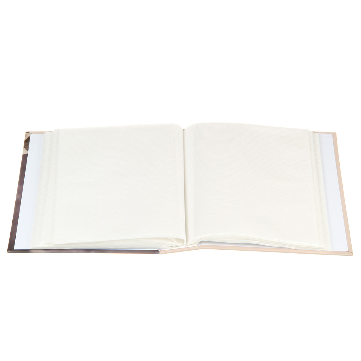 Стильный и красивый альбом вмещает в себя 200 фотографий формата 10х15 см. Пластиковые кармашки, 50 листов, скрепленных высокочастотной сваркой, по 2 фотографии на странице.