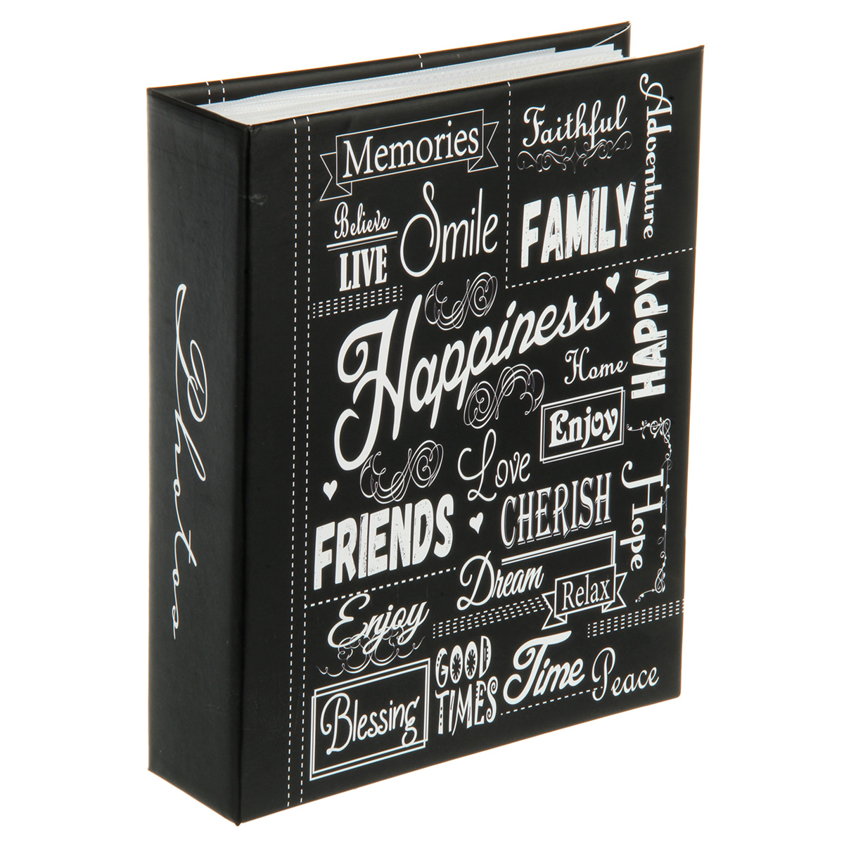 Стильный и красивый альбом вмещает в себя 200 фотографий формата 10х15 см. Пластиковые кармашки, 50 листов, скрепленных высокочастотной сваркой, по 2 фотографии на странице.