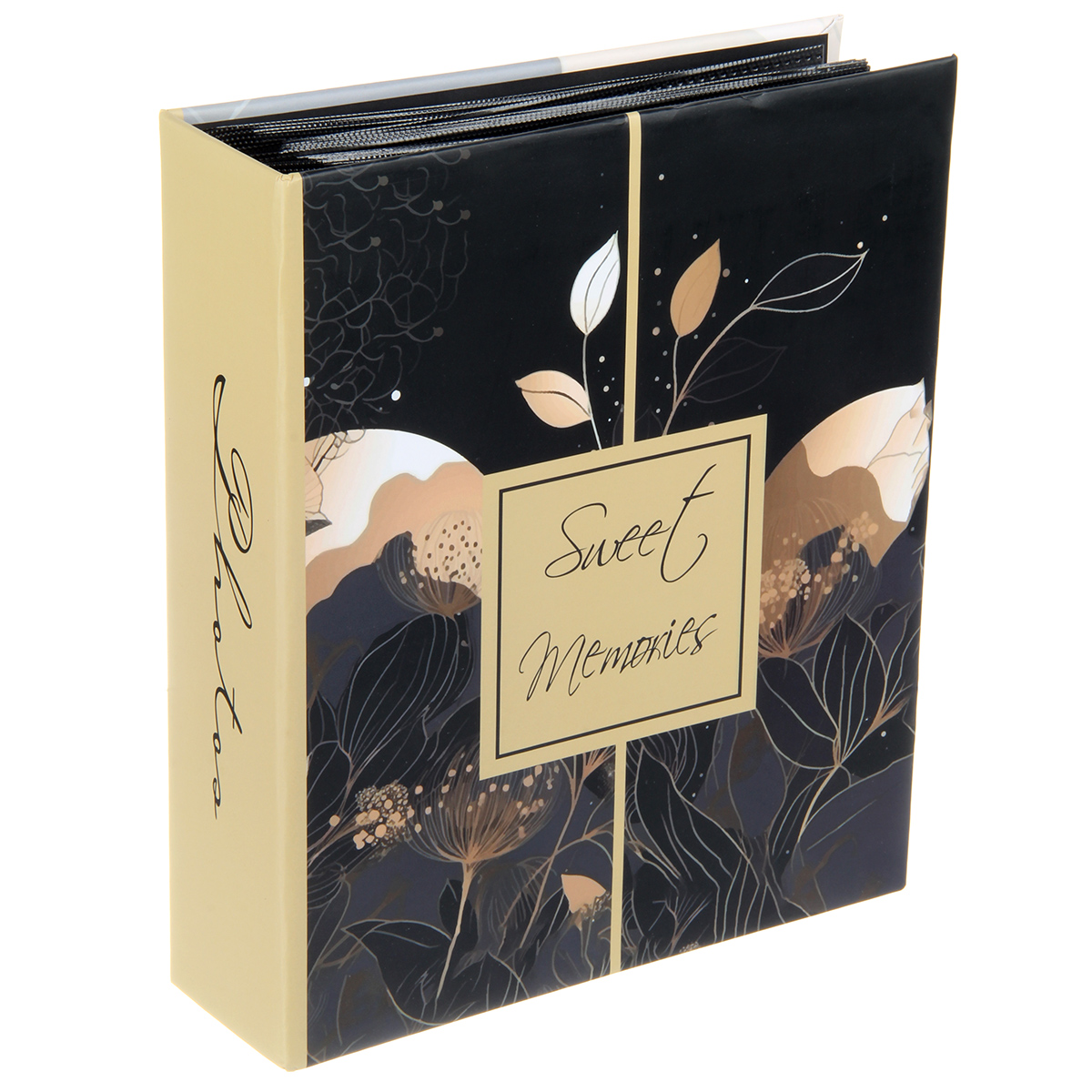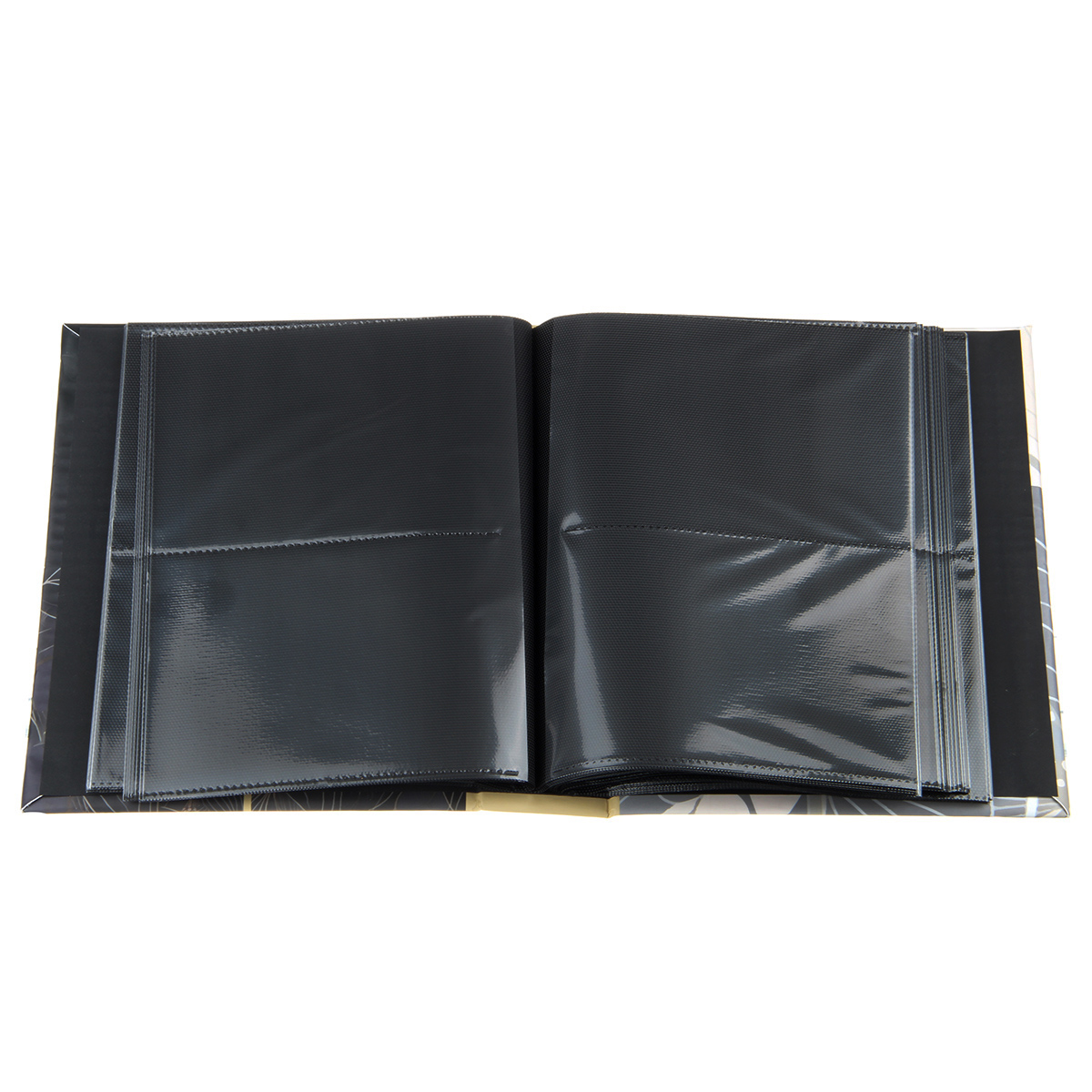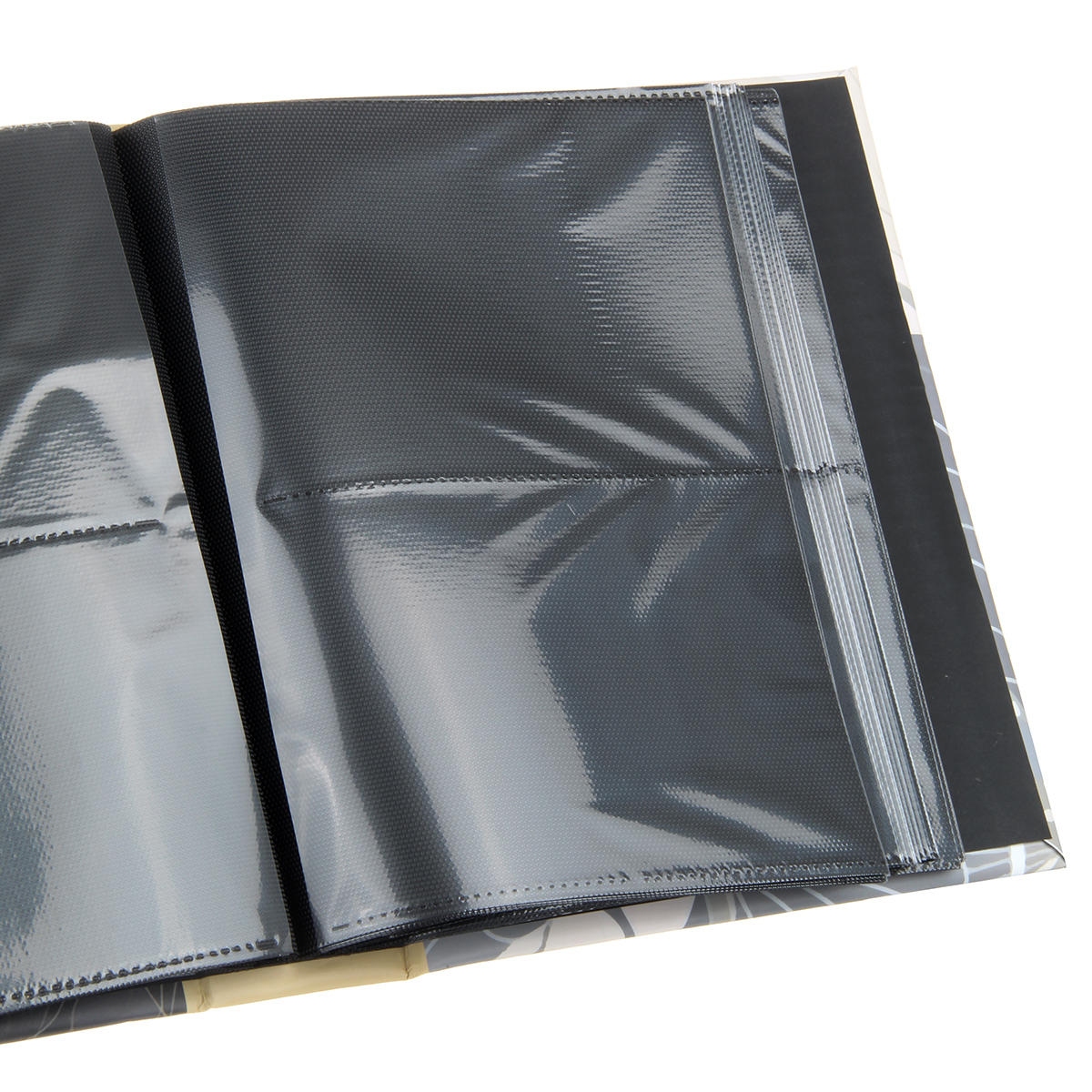 Стильный и красивый альбом вмещает в себя 200 фотографий формата 10х15 см. Черные пластиковые кармашки, 50 листов, скрепленных высокочастотной сваркой, по 2 фотографии на странице.