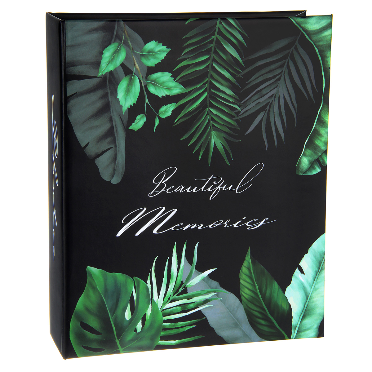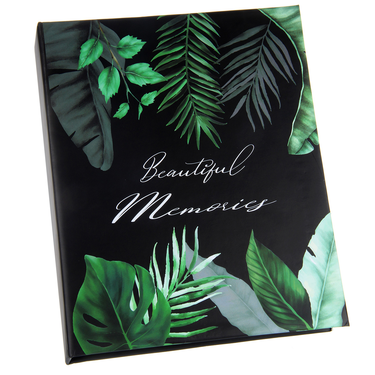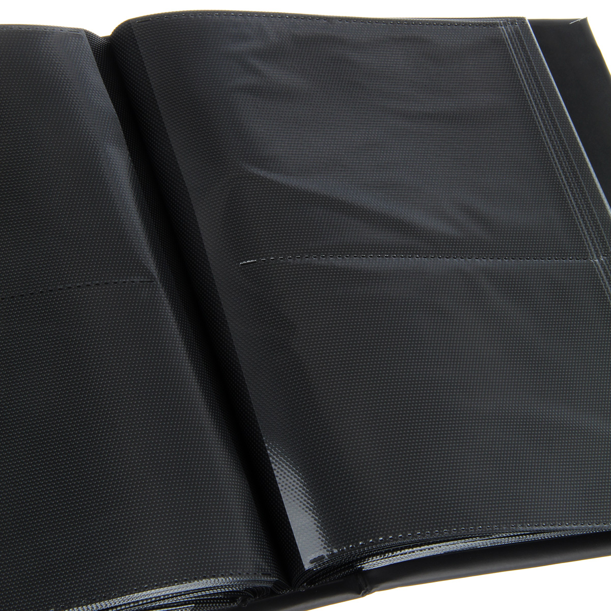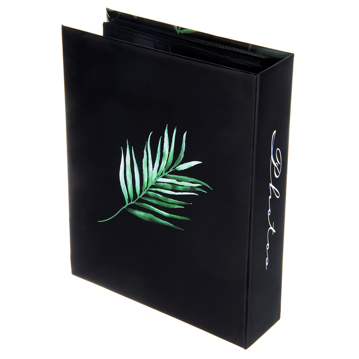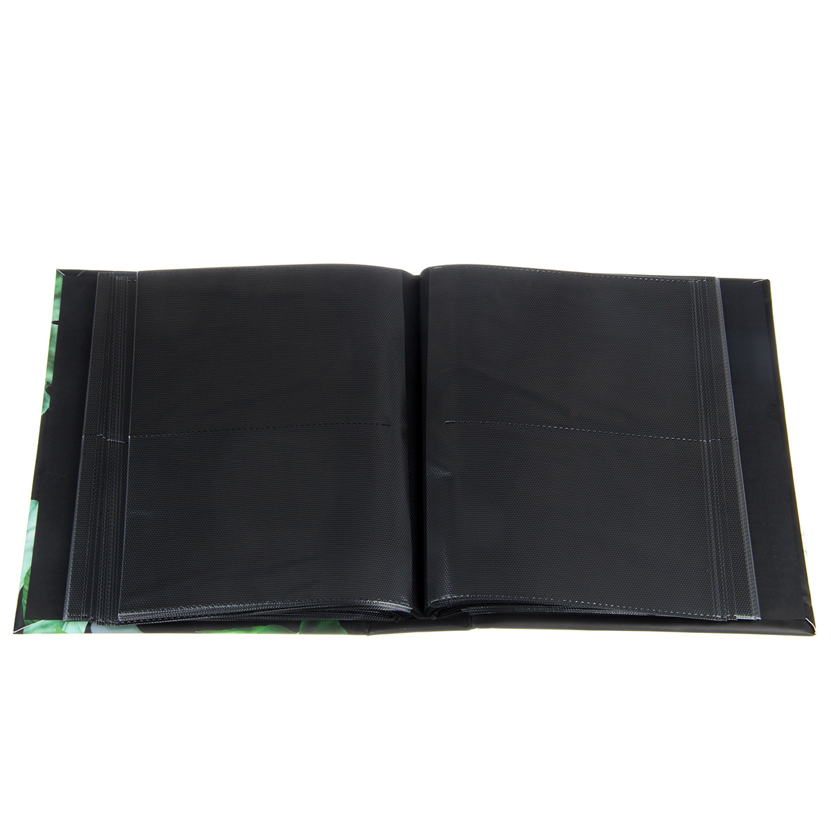 Стильный и красивый альбом вмещает в себя 200 фотографий формата 10х15 см. Пластиковые кармашки, черные страницы, 50 листов, скрепленных высокочастотной сваркой, по 2 фотографии на странице.