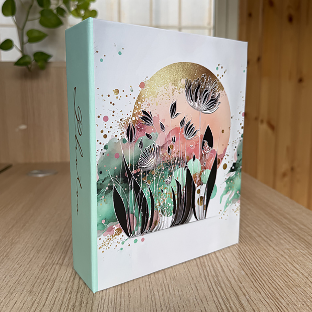 Стильный и красивый альбом вмещает в себя 304 фотографии формата 10х15 см. Пластиковые кармашки, 76 листов, скрепленных высокочастотной сваркой, по 2 фотографии на странице.