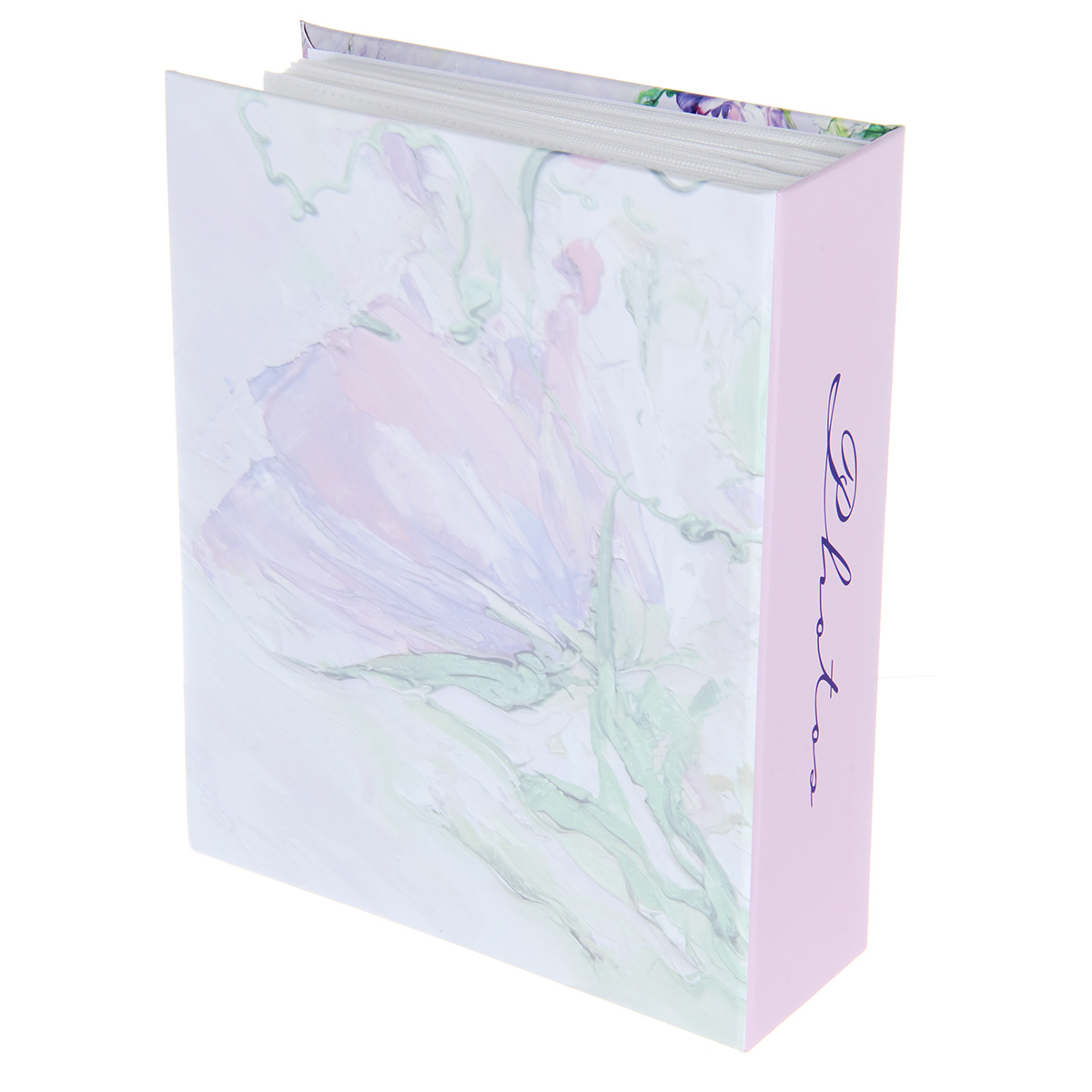 Стильный и красивый альбом вмещает в себя 304 фотографии формата 10х15 см. Пластиковые кармашки, 76 листов, скрепленных высокочастотной сваркой, по 2 фотографии на странице.