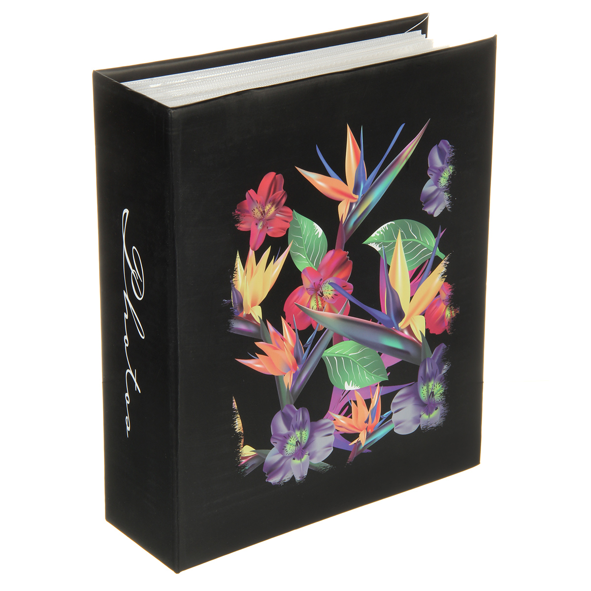 Стильный и красивый альбом вмещает в себя 304 фотографии формата 10х15 см. Пластиковые кармашки, 76 листов, скрепленных высокочастотной сваркой, по 2 фотографии на странице.
