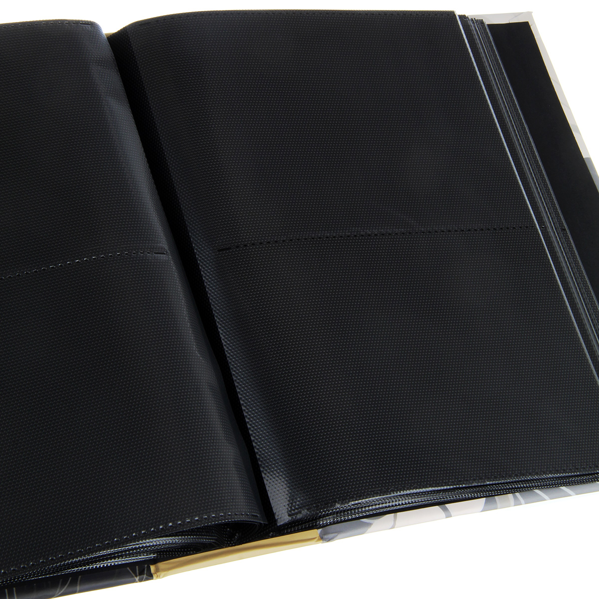 Стильный и красивый альбом вмещает в себя 304 фотографии формата 10х15 см. Пластиковые кармашки, черные страницы, 76 листов, скрепленных высокочастотной сваркой, по 2 фотографии на странице.
