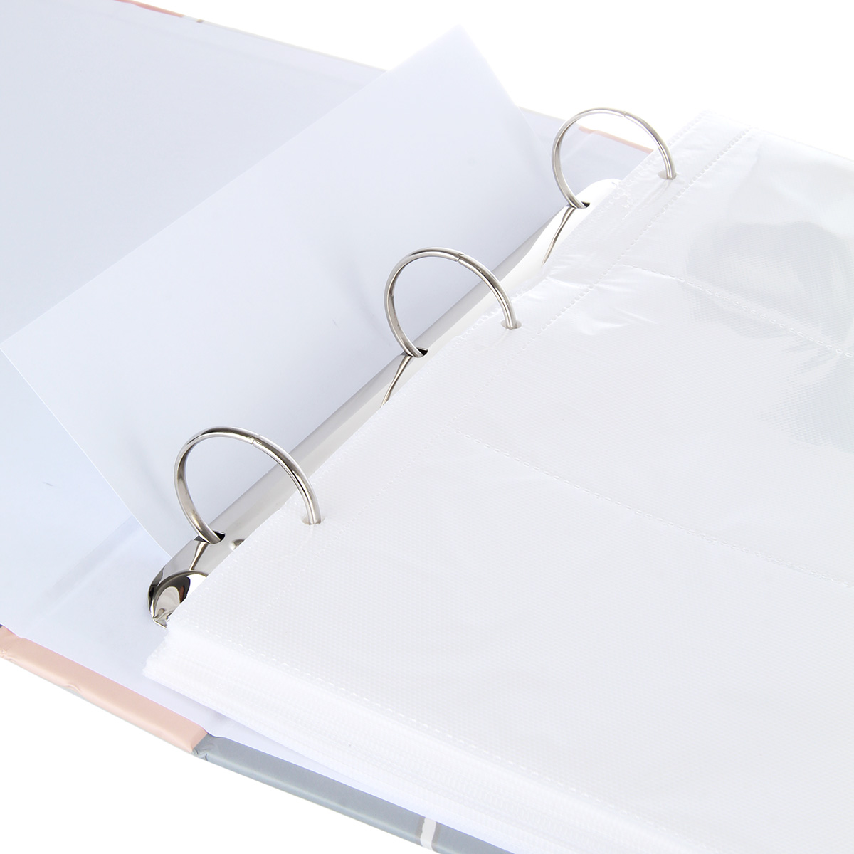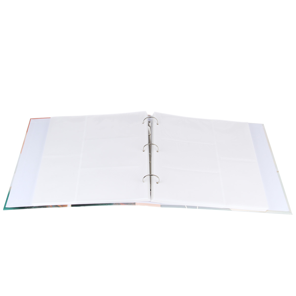 Стильный и красивый альбом на кольцах вмещает в себя 500 фотографий формата 10х15 см. Пластиковые кармашки, 50 листов, по 5 фотографий на странице.
