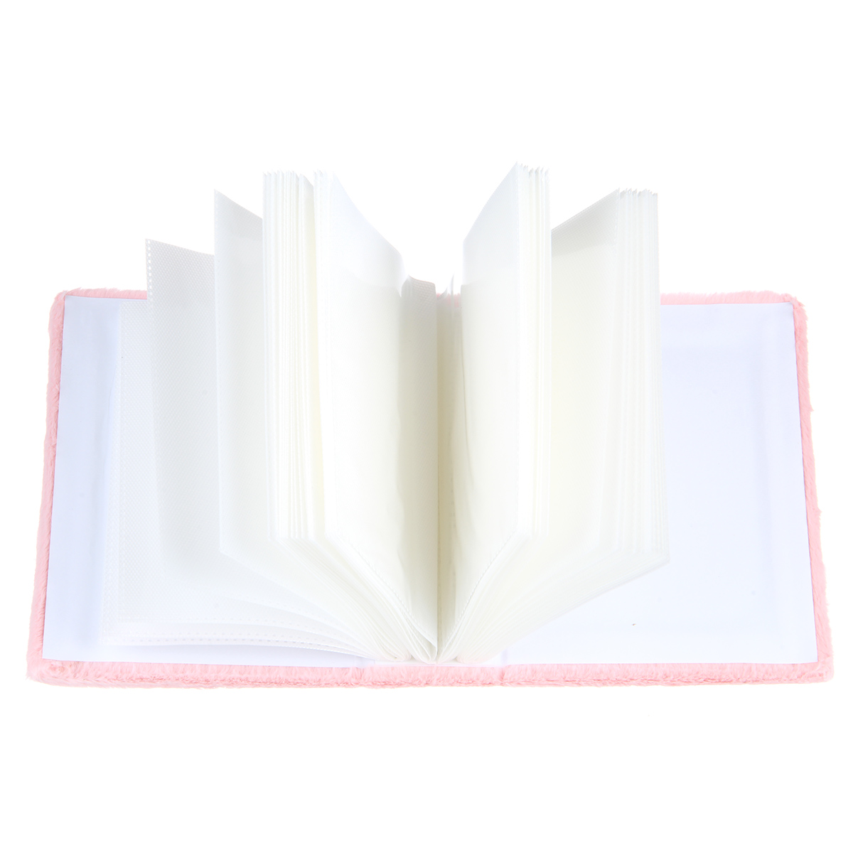 Фотоальбом изготовлен из картона, пластика и искусственного меха.