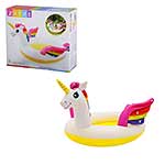 Детский надувной бассейн в виде волшебного Единорога от компании Интекс понравится каждому ребенку. Небольшой фонтанчик, бьющий из его хвоста, придает данной модели надувного бассейна дополнительное очарование. Для работы фонтанчика вам понадобится обычный садовый шланг, который нужно подключить к специальному отверстию в бассейне. Если бассейн с фонтанчиком чрезмерно наполнился, достаточно открыть клапан в нижней части бассейна, чтобы выпустить лишнюю воду. Характеристики: Размеры: 272*193*104 см, высота бортиков 17 см. Дно не надувное. Объем: 165 литр при наполнении на 80%. Толщина винила: 0.28 мм. Удобный сливной клапан. Предназначен для детей от 2 лет. Вес: 3.21 кг