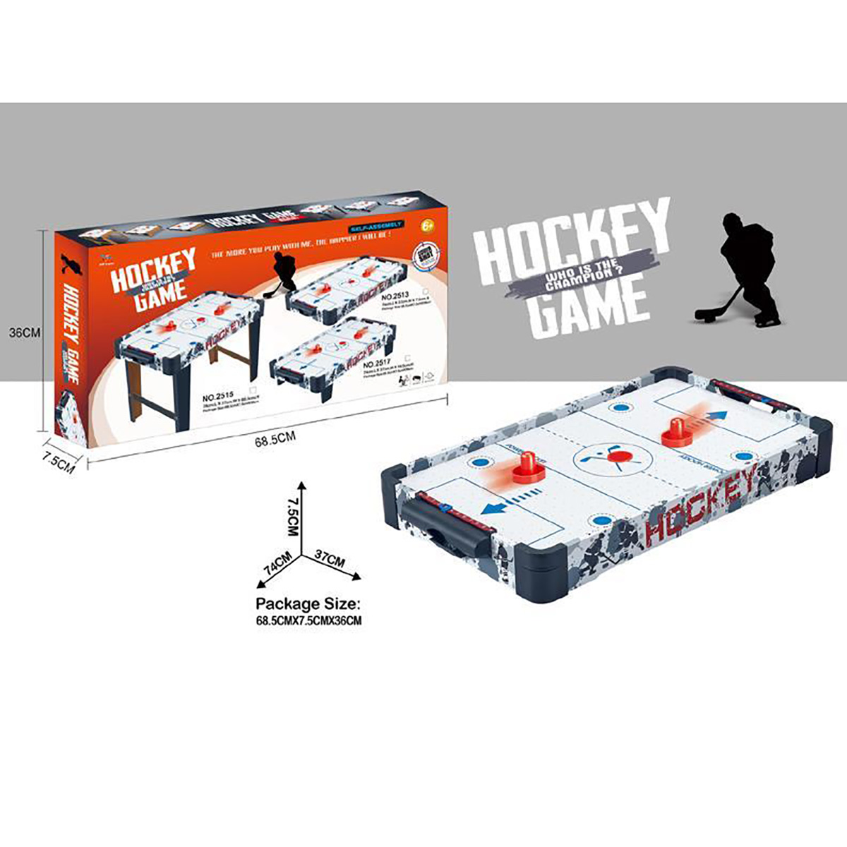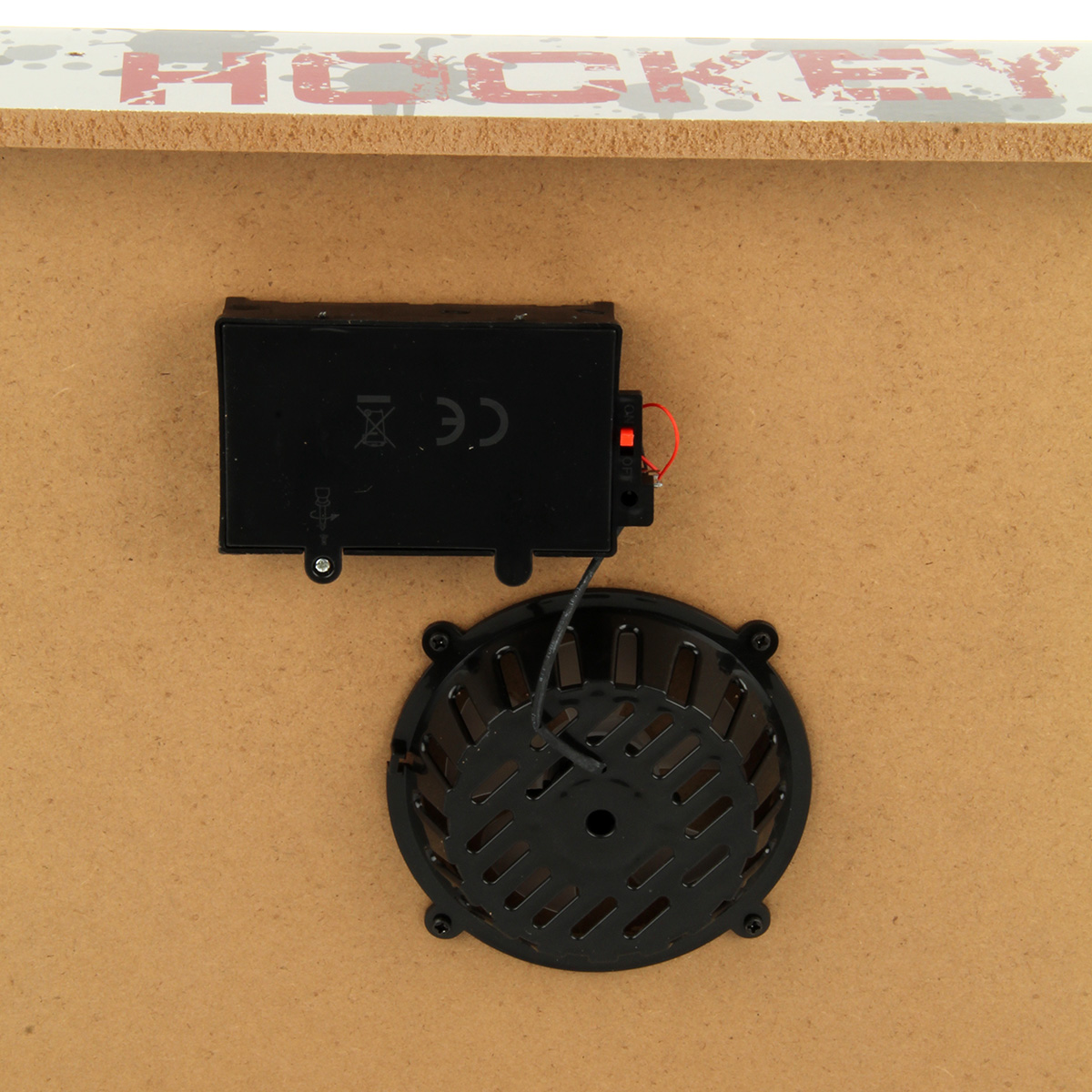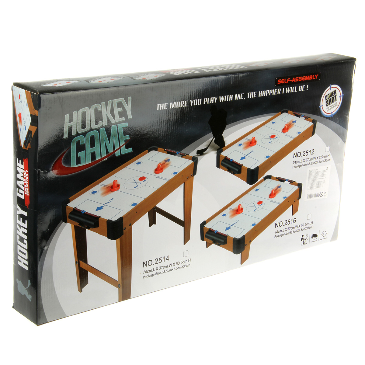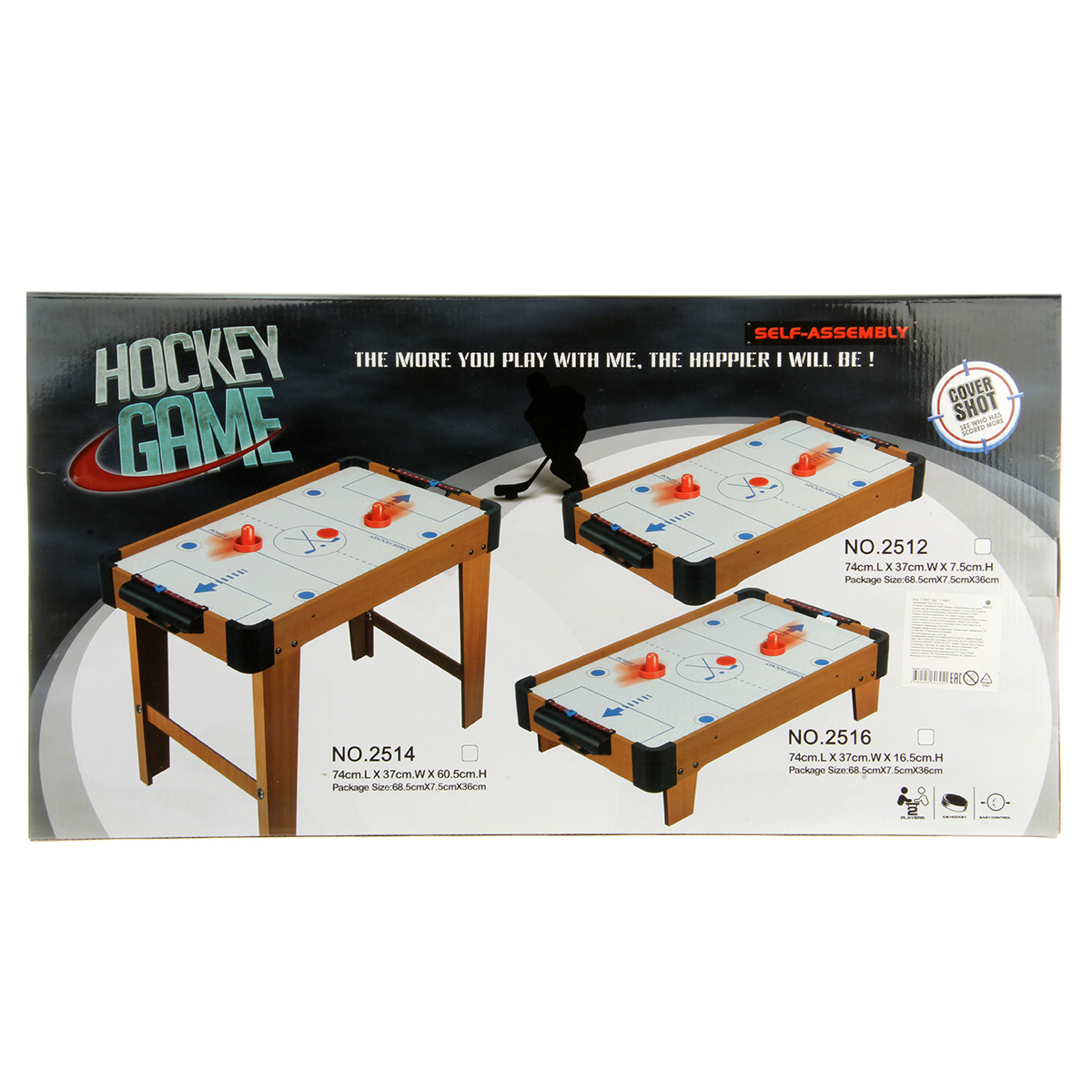 В комплекте детали для сборки игровой площадки, 2 биты, 2 шайбы, ключ. Передвигаем боковые бегунки, считаем очки. С внутренней стороны аэрохоккея есть вентилятор, нагоняет воздух для лучшего скольжения шайбы.
