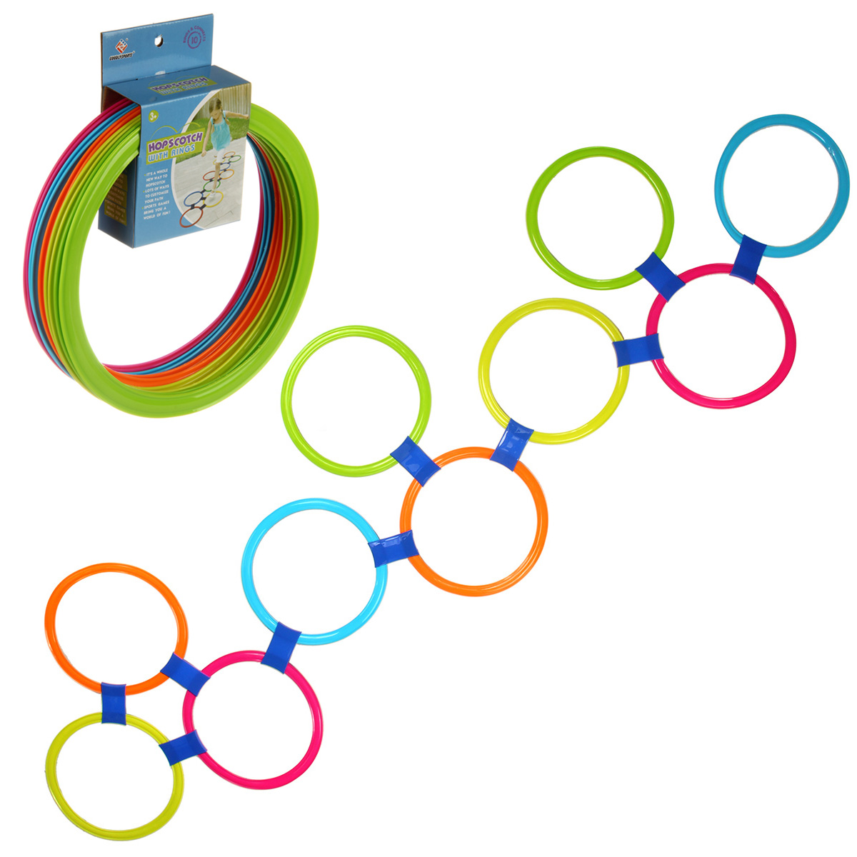 В комплекте 10 колец, 10 креплений. Соединяем кольца между собой в произвольном порядке.