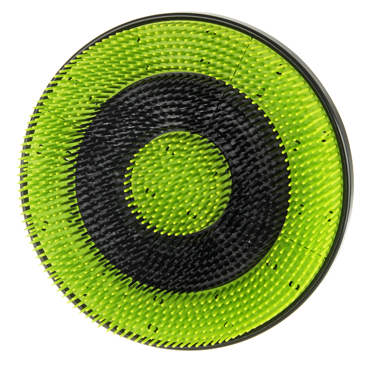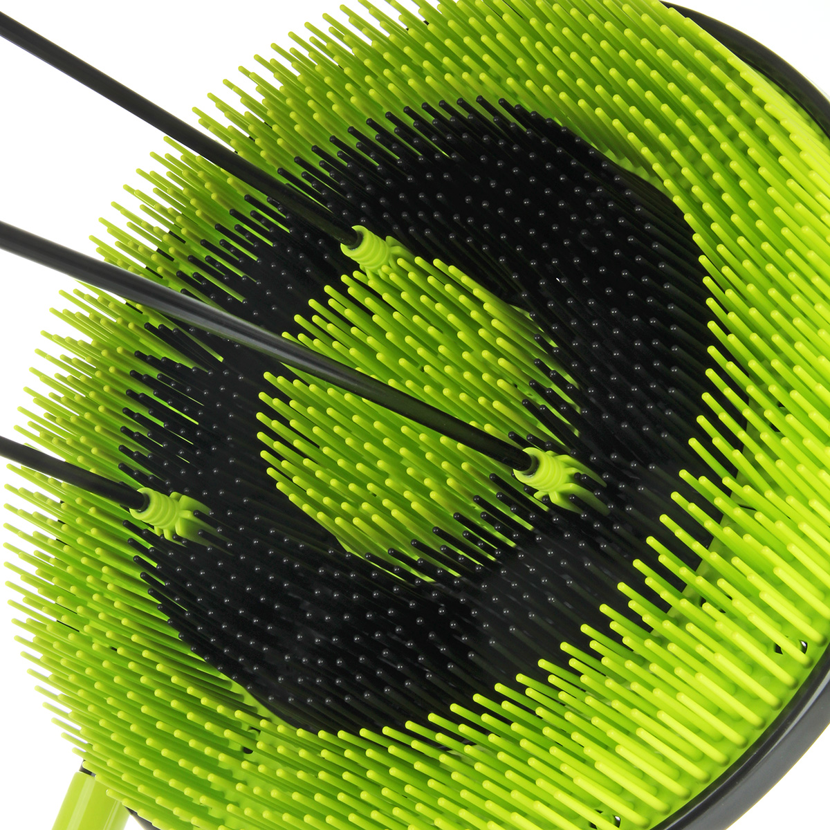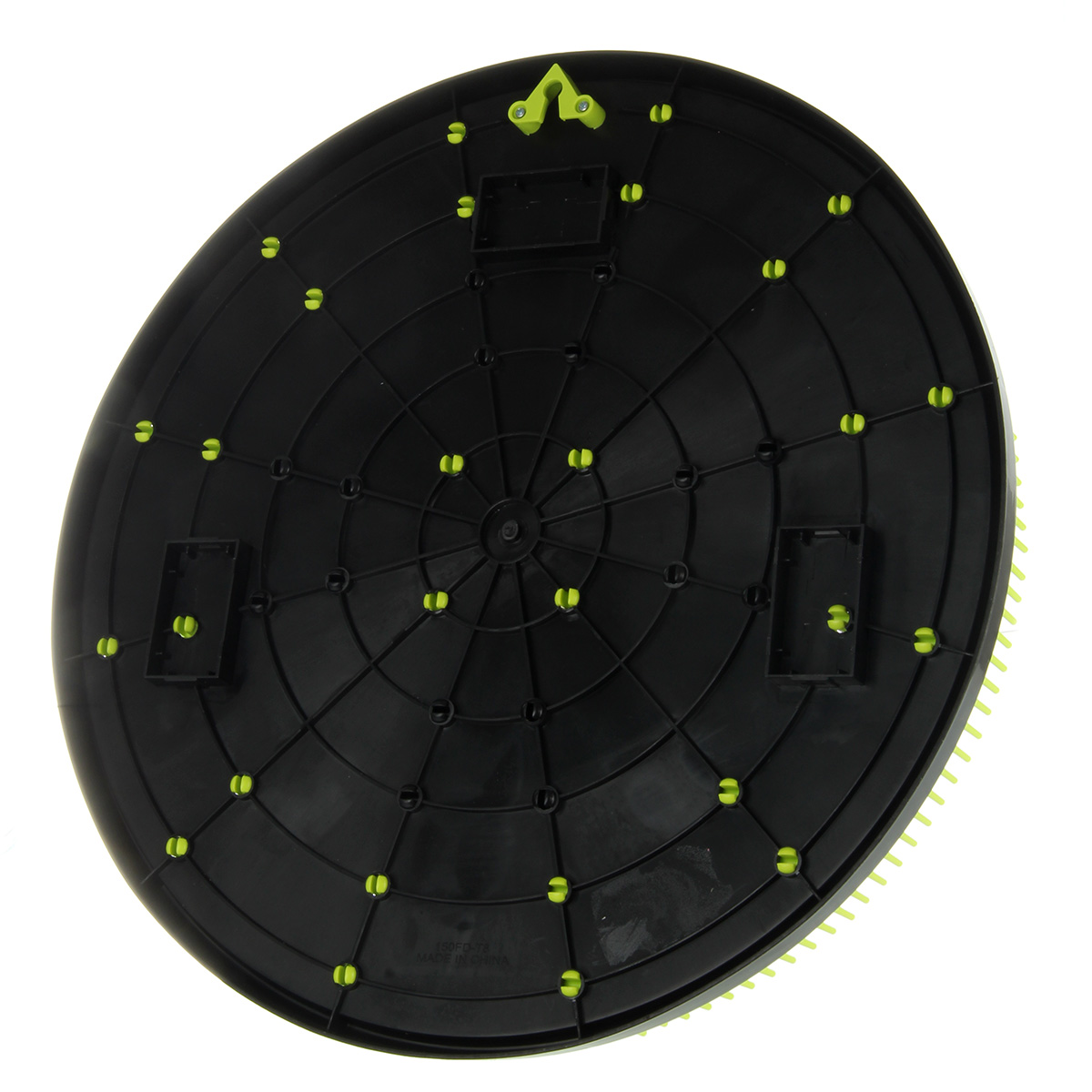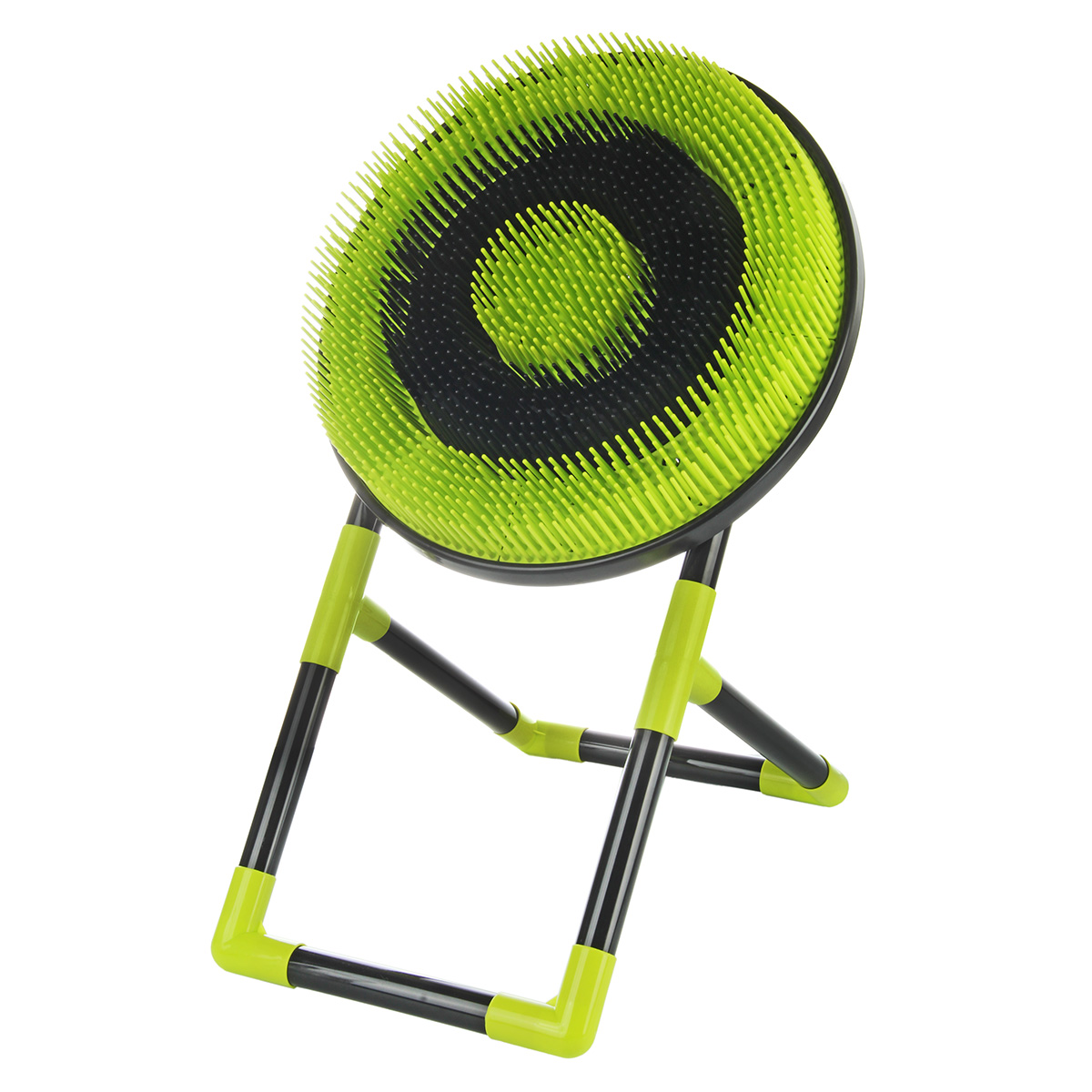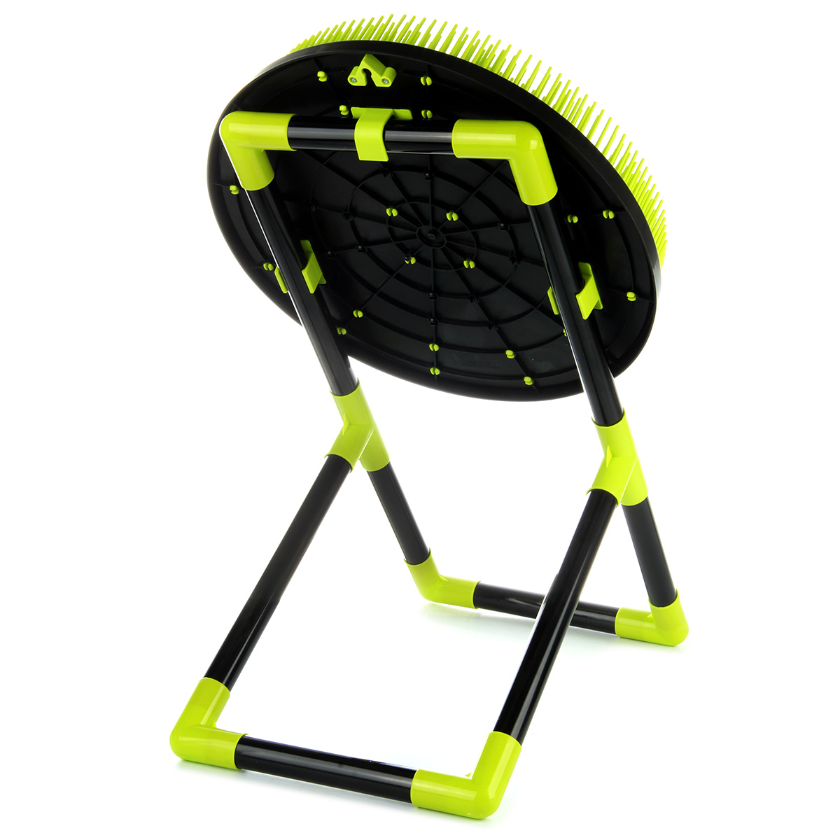 У мишени прорезиненные ворсинки язычки, после броска все предметы в них застревают. Круглую мишень можно отсоединить от подставки.