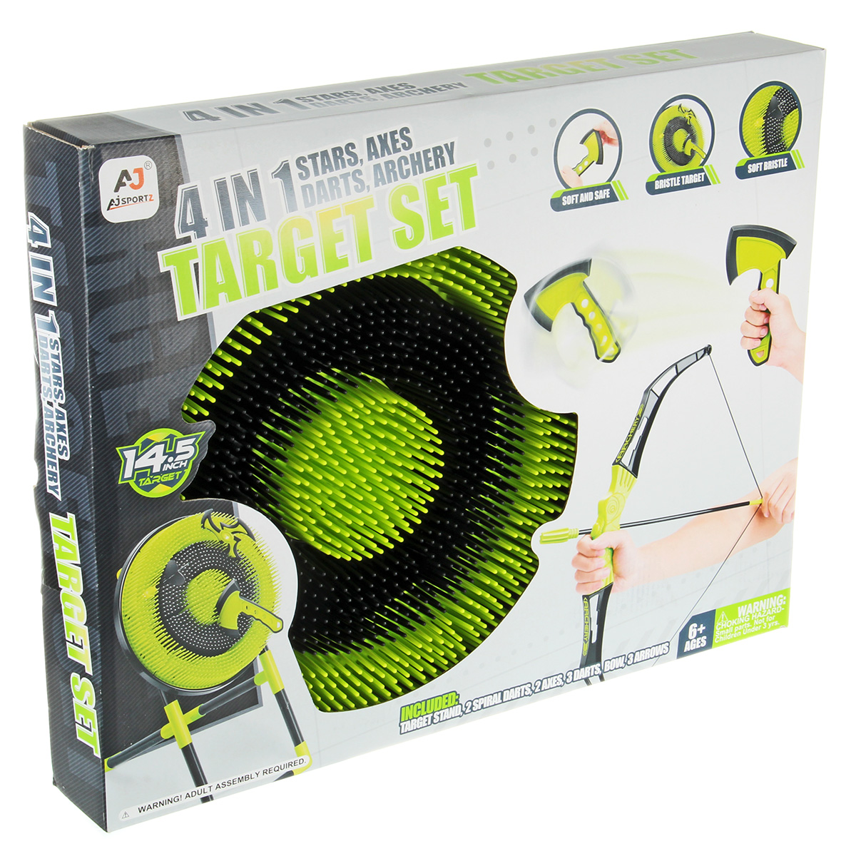 4 игры в одном наборе, дартс детский с дротиками, сюрикэндзюцу, метание топориков, cтрельба из лука. Снаряды для метания имеют мягкие элементы, безопасно для ребенка. Игрушка мишень легко собирается, можно отделить мишень от подставки. Спортивная игра на ловкость отличается интересной задумкой, изготовлена из качественных и долговечных материалов, имеет простой принцип работы, отличный набор для игры всей семьей. Набор для метания детский поможет в развитии важных навыков и поддержании хорошей физической формы, станет замечательным подарком для мальчика и девочки.