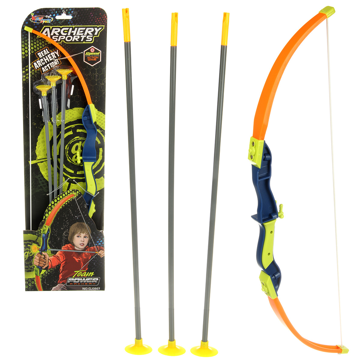 Набор лук и стрелы изготовлен из прочных и долговечных материалов.
