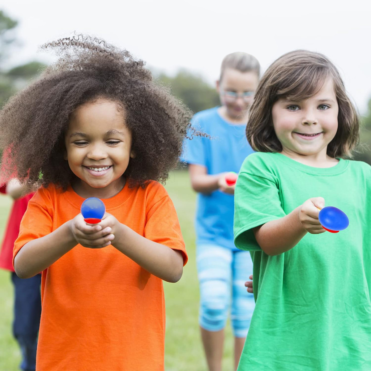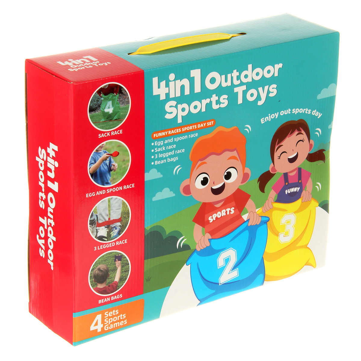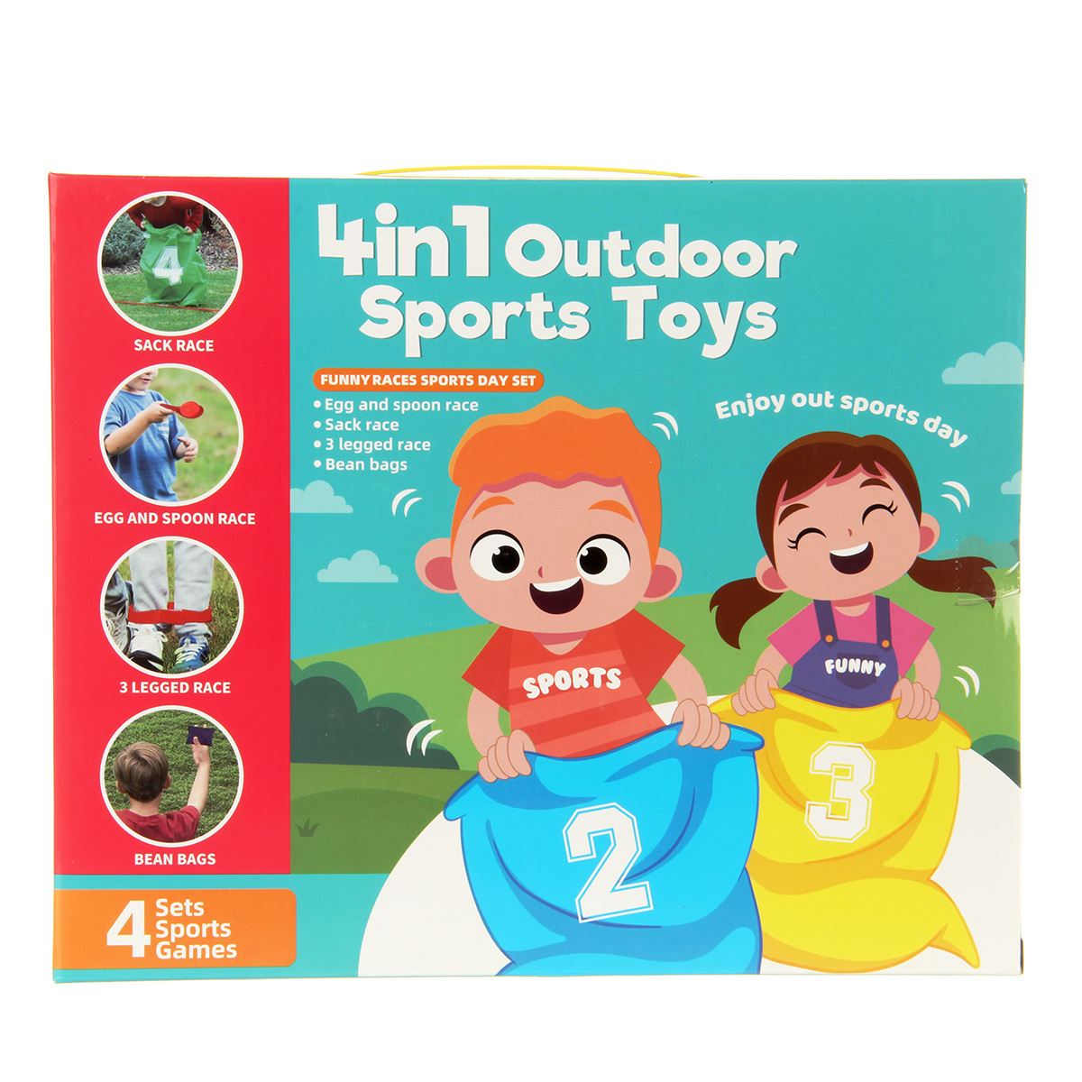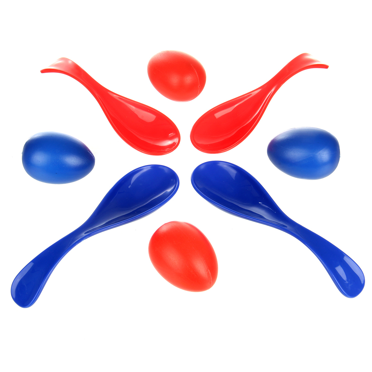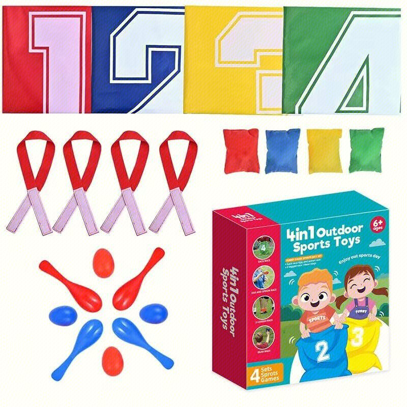 Четыре игры в одном наборе, 2 цвета ложек и яиц для двух команд, компактная упаковка для хранения.