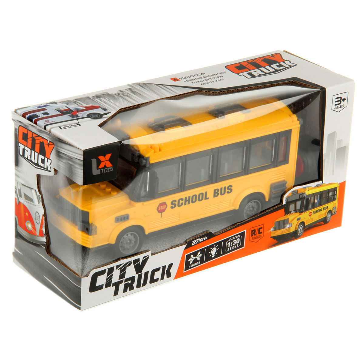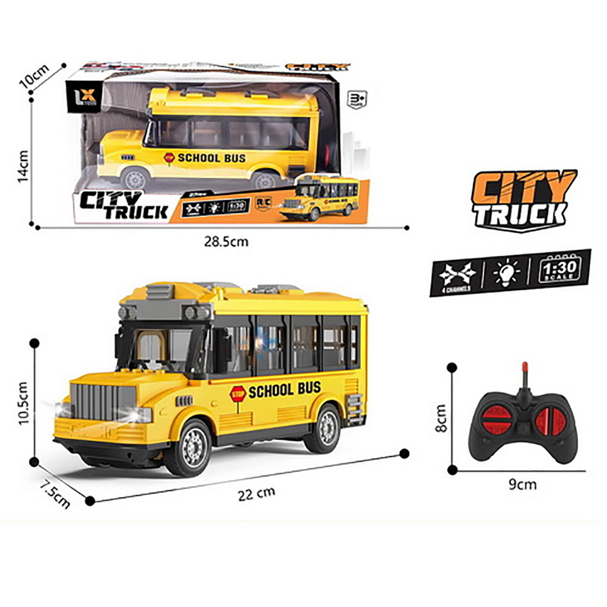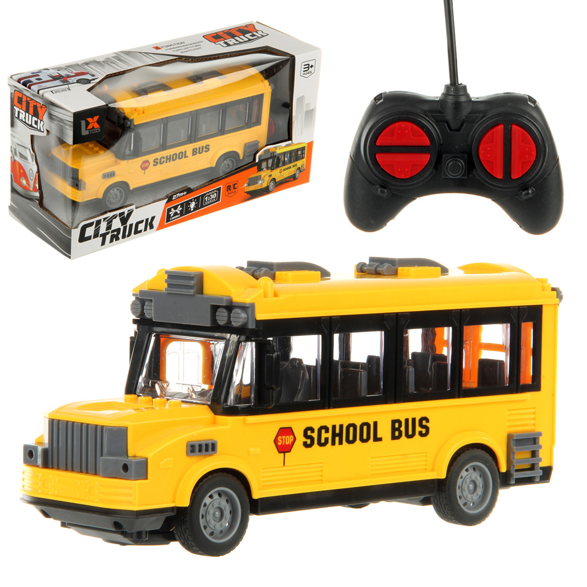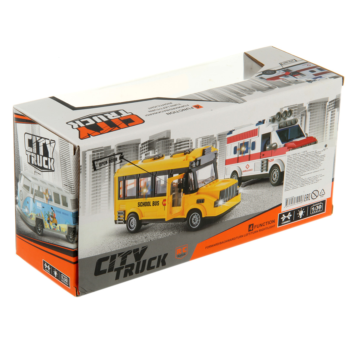 Автобус на радиоуправлении понравится каждому ребенку: - игрушка автобус со светом; - реалистичный дизайн; - подвижные элементы; - автобус игрушка в красивой подарочной упаковке. В комплекте машинка, пульт управления. Функционал: - лампочка в салоне подсвечивается синим и красным (подсветка мигающая), подсвечиваются передние фары; - открывается дверка салона; - катается во все стороны; - поворачивают передние колеса; - заднеприводный; - колеса прорезинены. Автобус работает от 3 батареек АА, не входят в комплект. Пульт управления работает от 2 батареек АА, не входят в комплект. Частота радиоуправления: 27 МГц. Масштаб 1:30. Материал: полимер. Размеры машинки: 22*8*10 см. Размеры пульта управления: 9*4*6 см. Размеры коробки: 28*10*14 см.