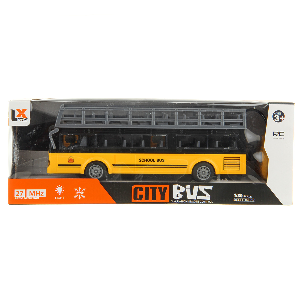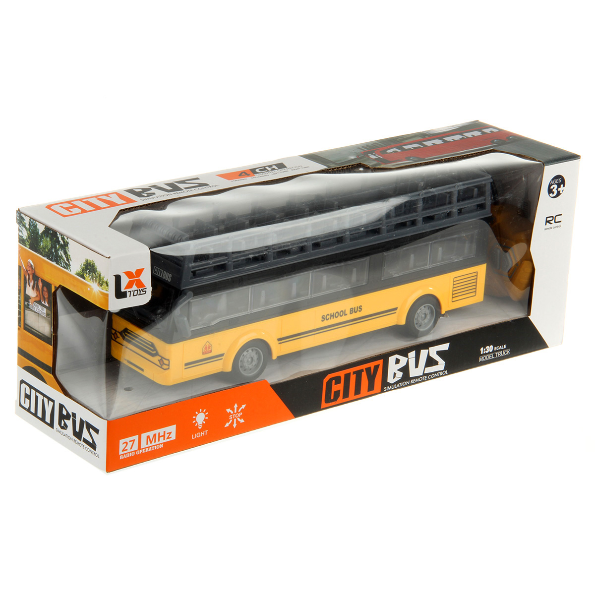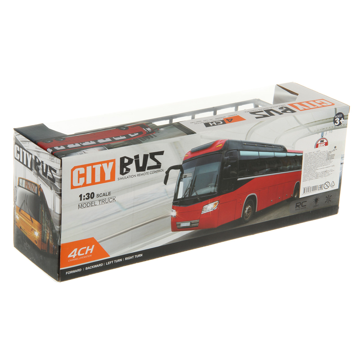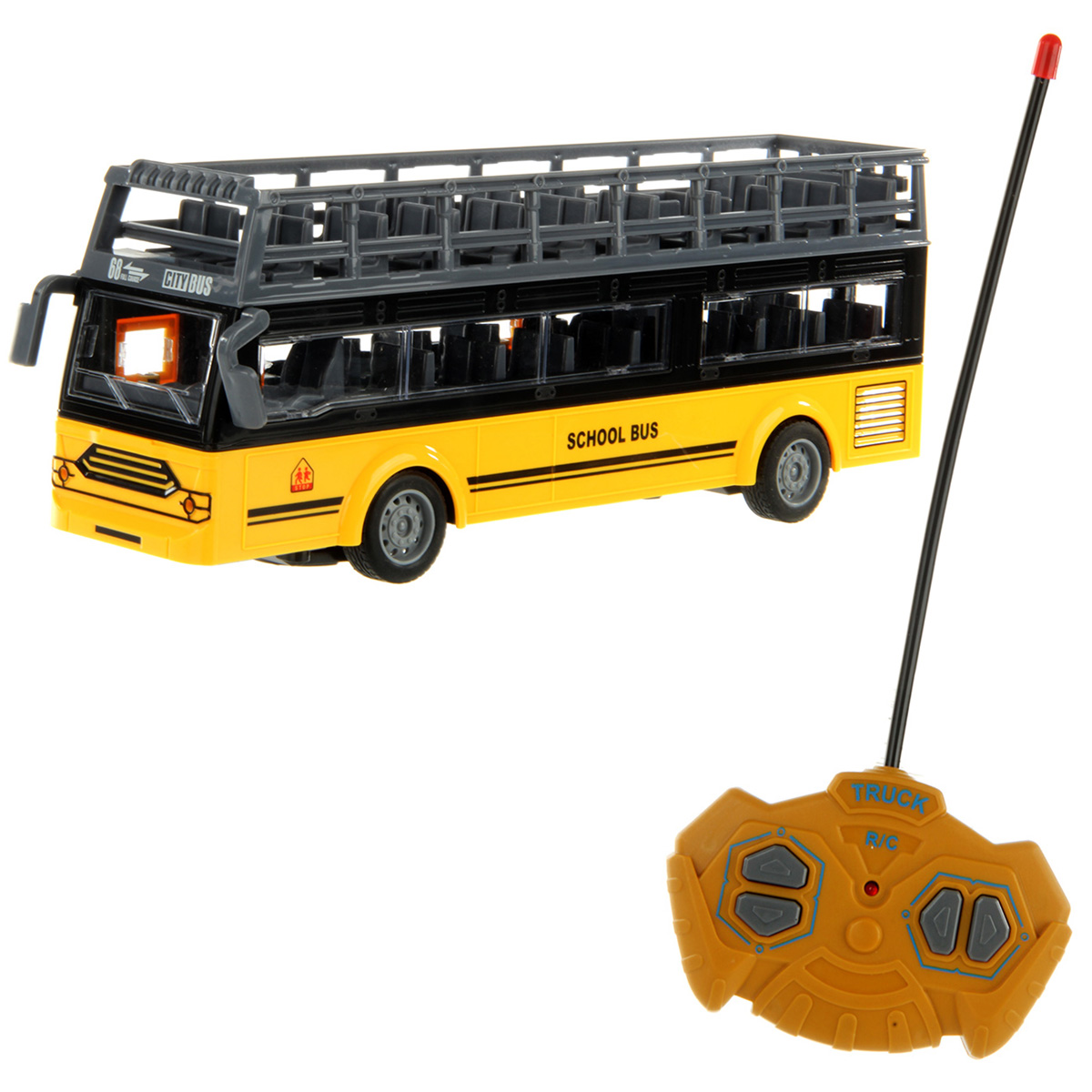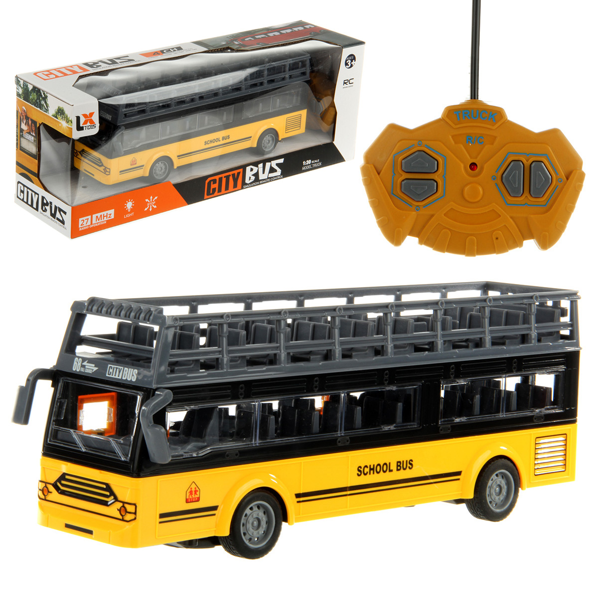 В комплекте игрушка автобус и пульт управления.