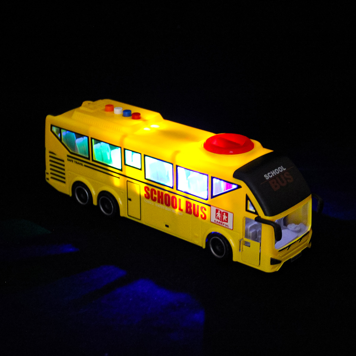 3. При нажатии кнопок на крыше издает звуки гудка, закрытия дверей, аварийной остановки, заводящегося двигателя. Подсветка лампочек в салоне.