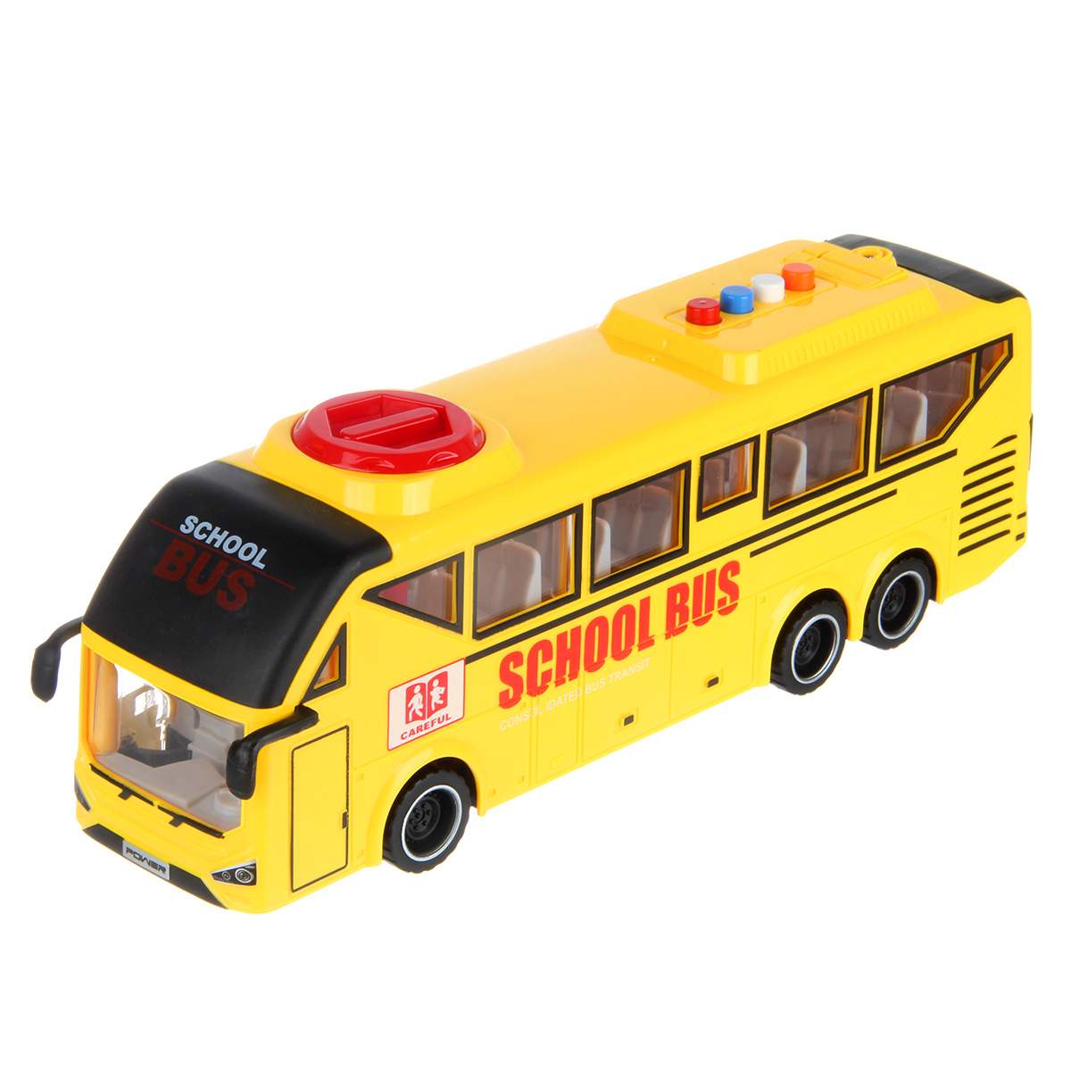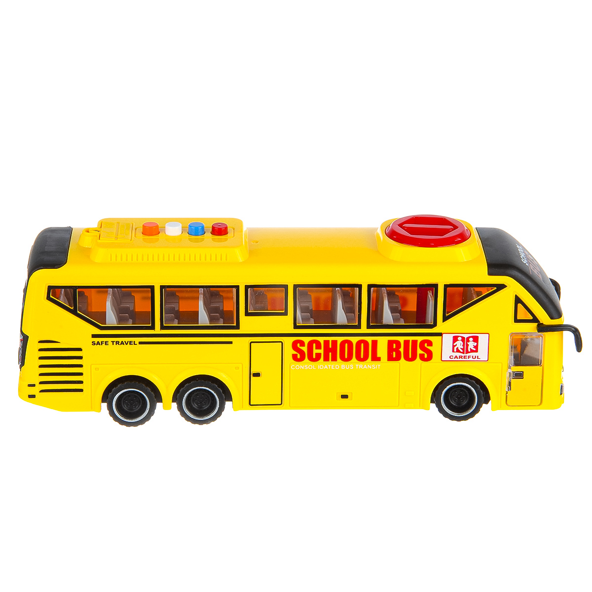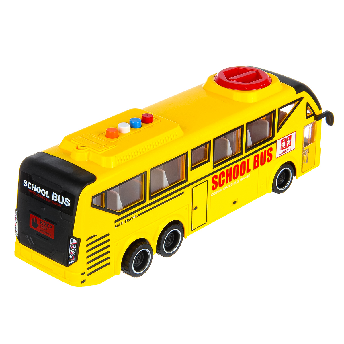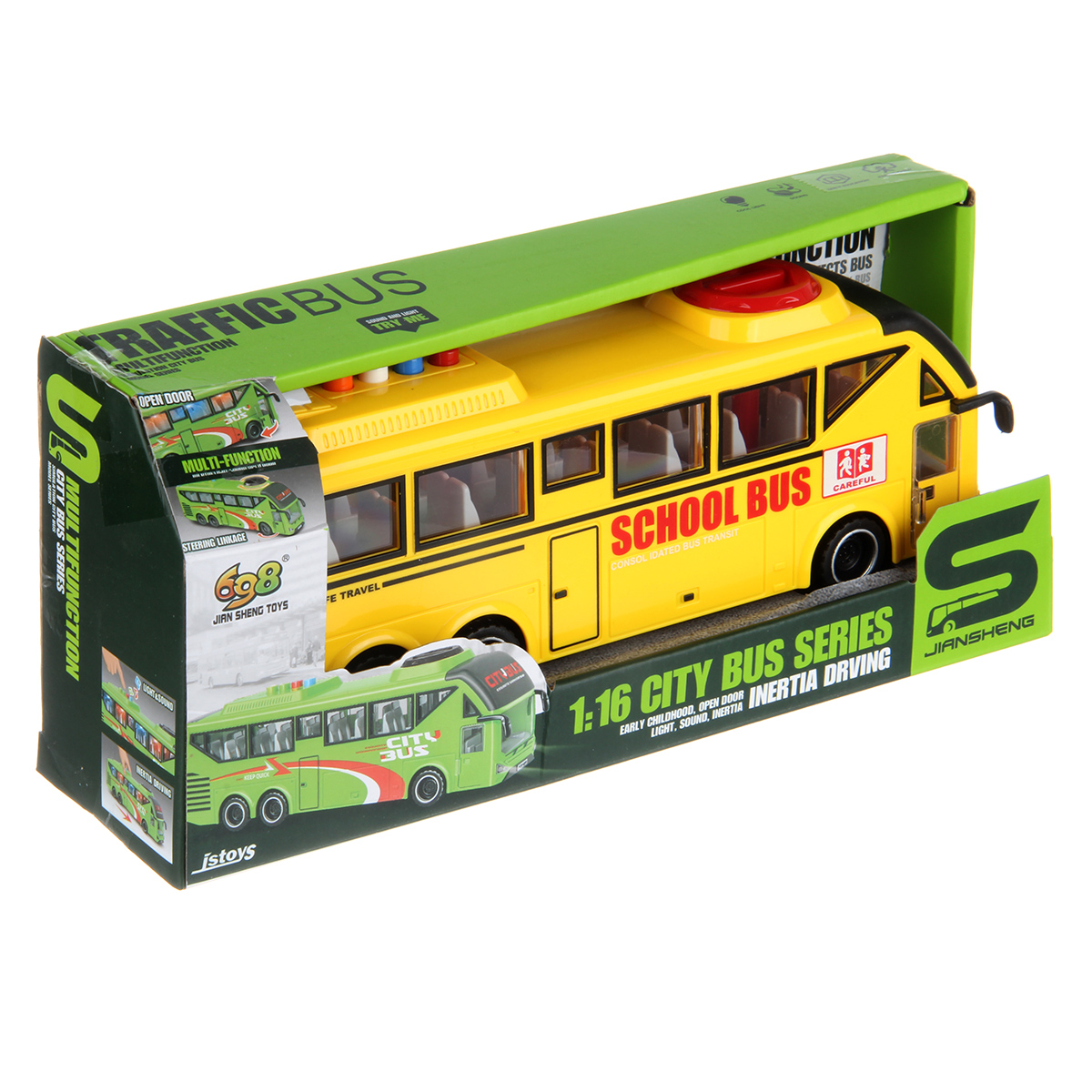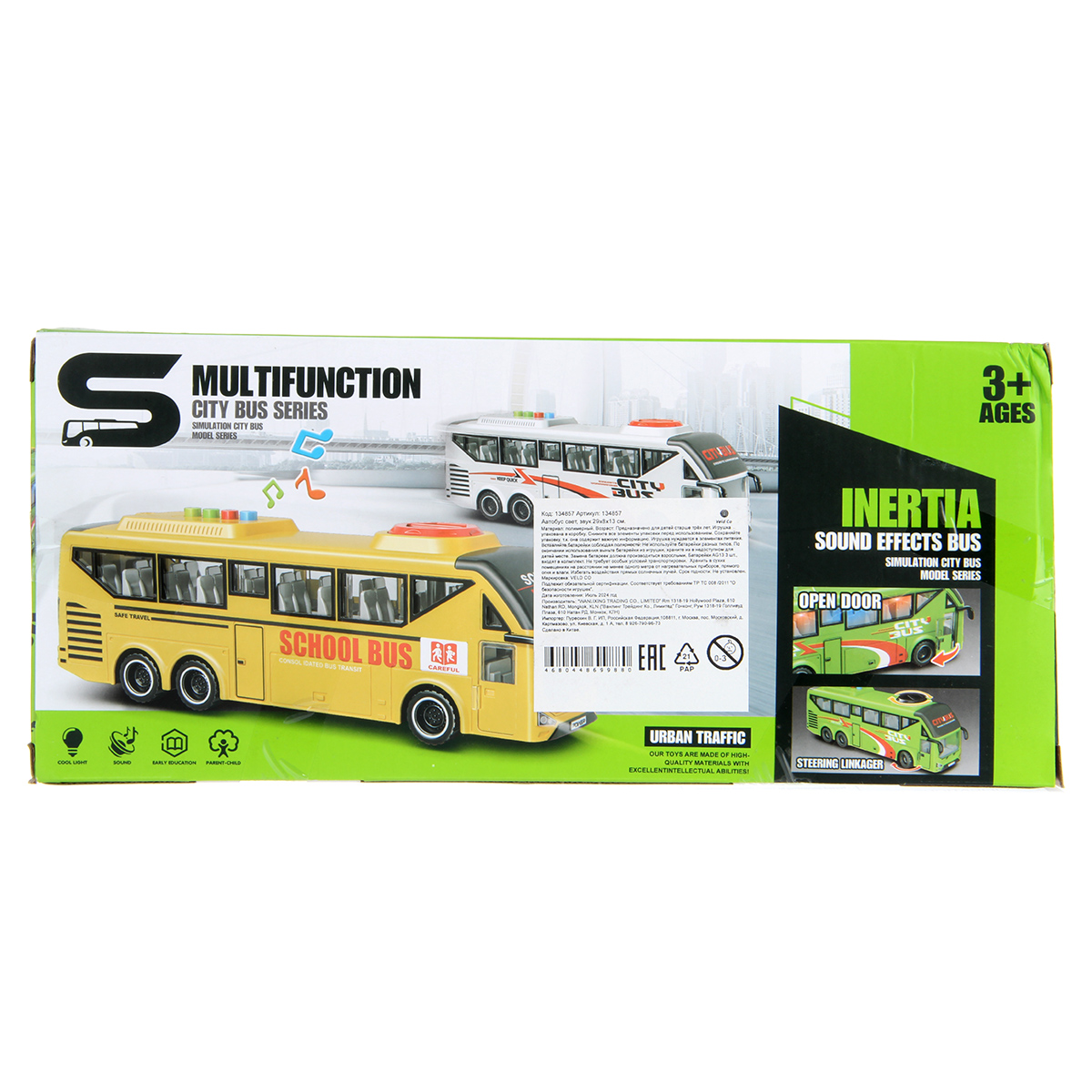 Игрушечный автобус имеет широкий функционал, катается во все стороны, оснащен фрикционным механизмом, издает звуки гудка.