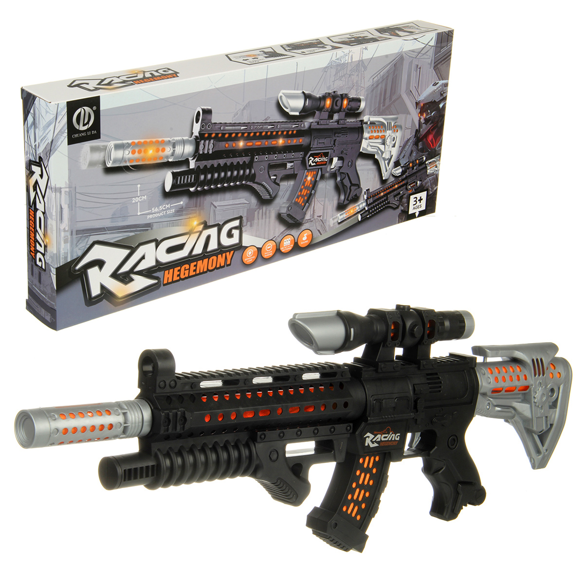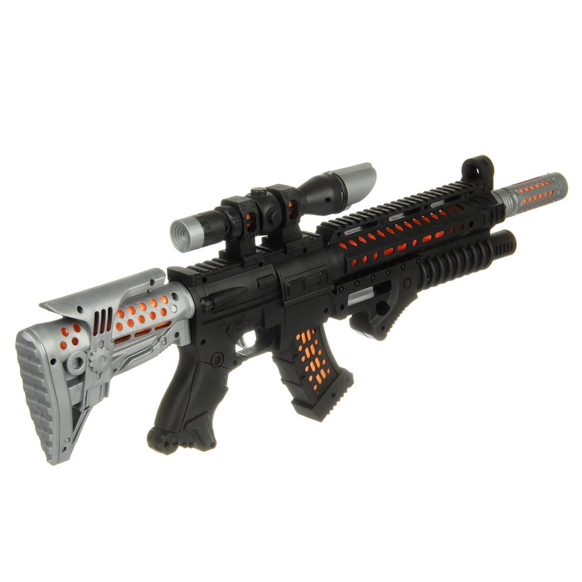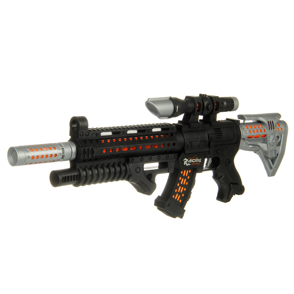 Большое игрушечное оружие с подсвечивающимися элементами и звуковыми эффектами.
