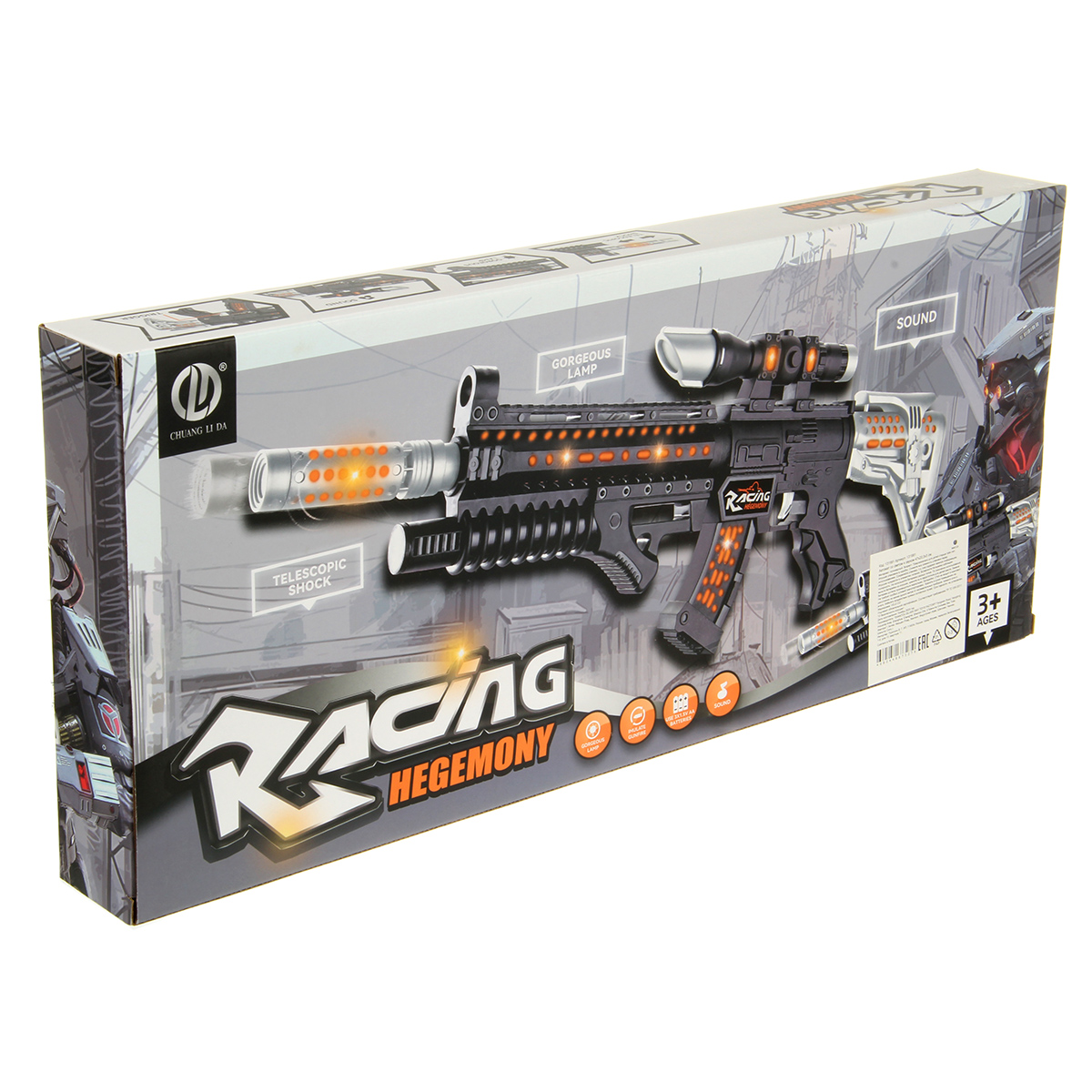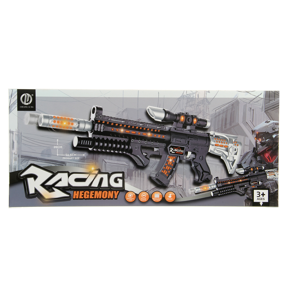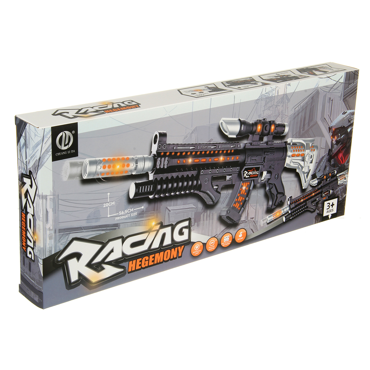 Большое игрушечное оружие с подсвечивающимися элементами и звуковыми эффектами.