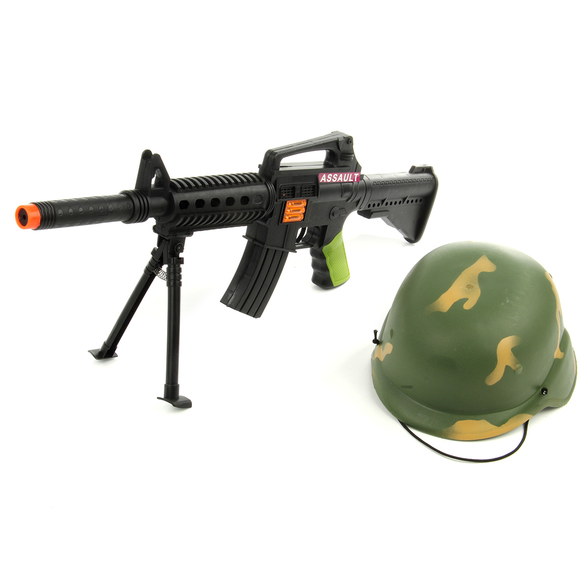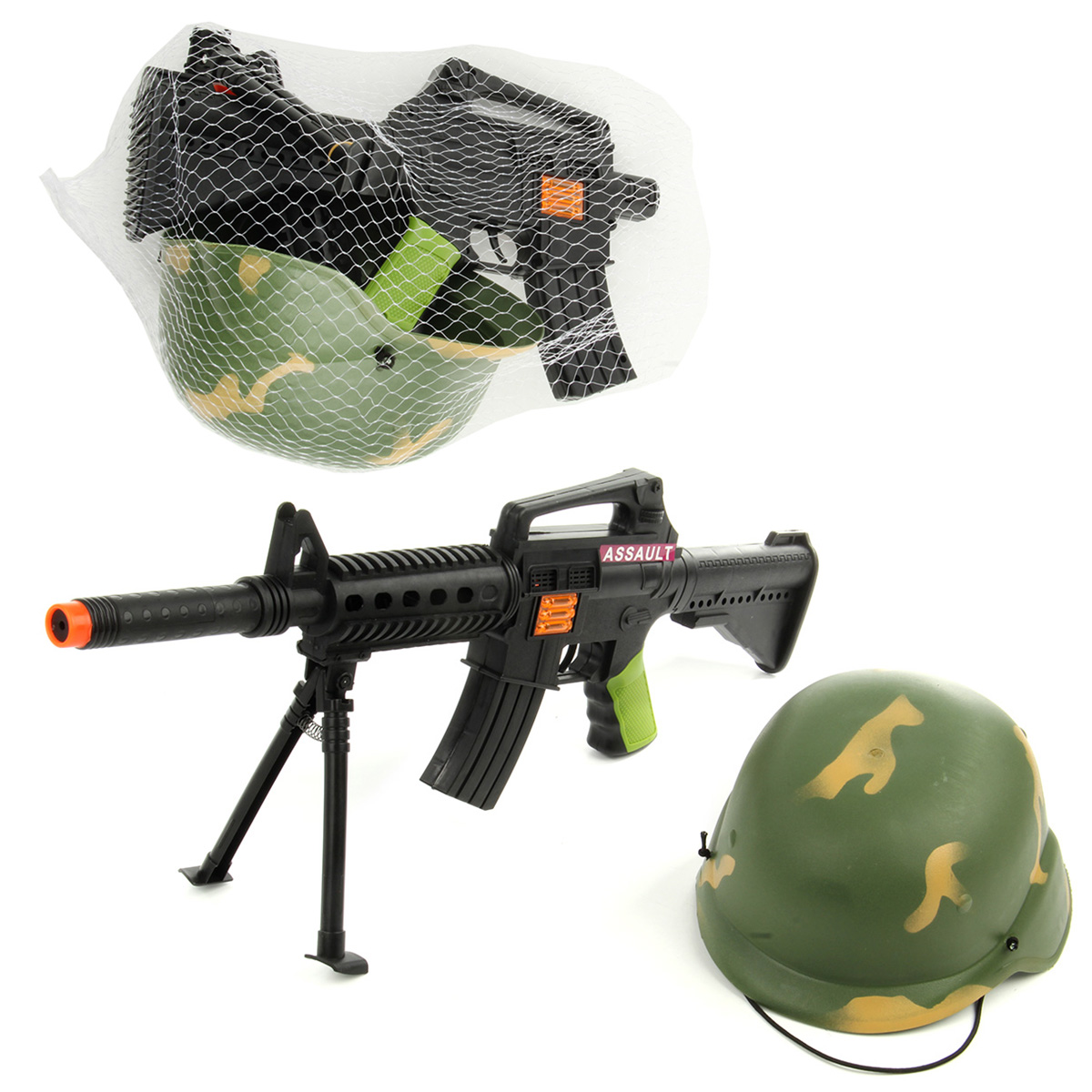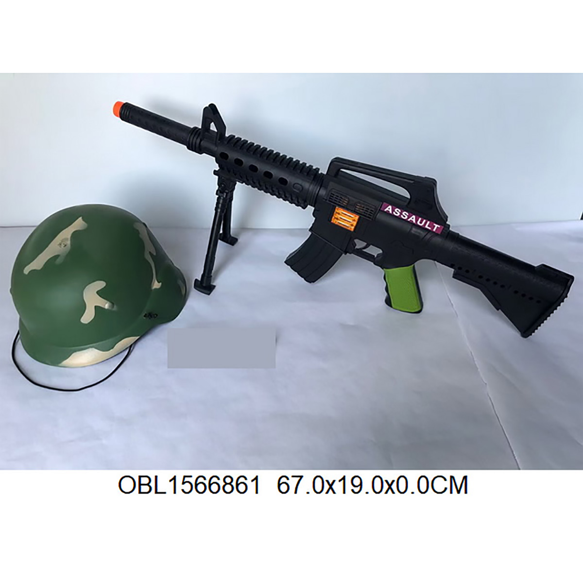 Игрушечное оружие в большом размере и реалистичном дизайне, снимающиеся сошки, защитная расцветка каски.