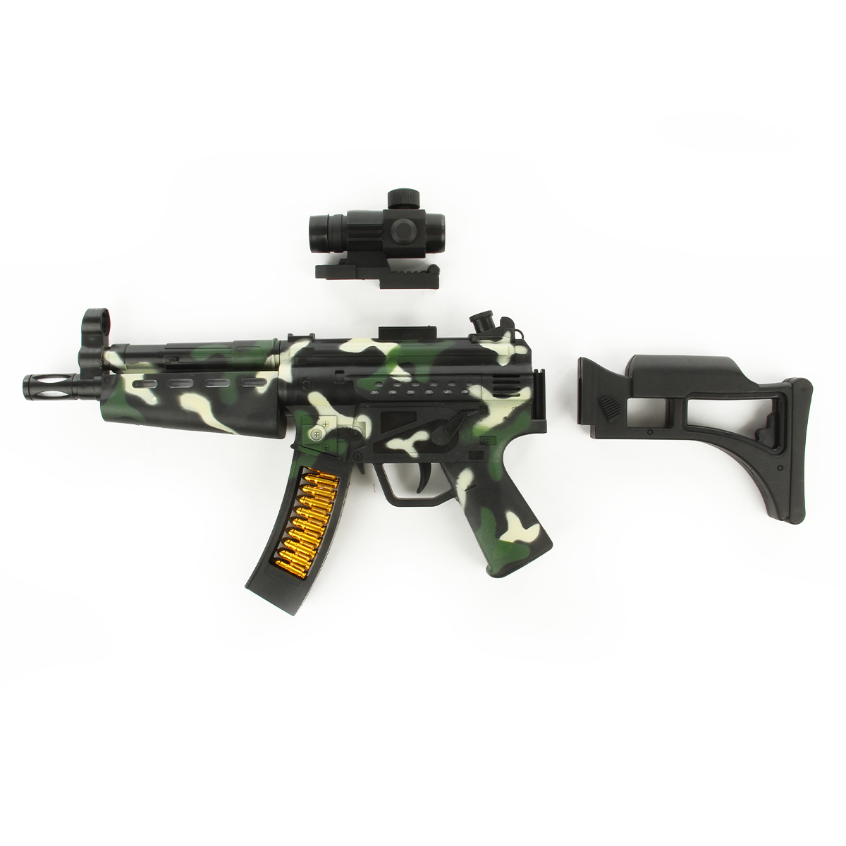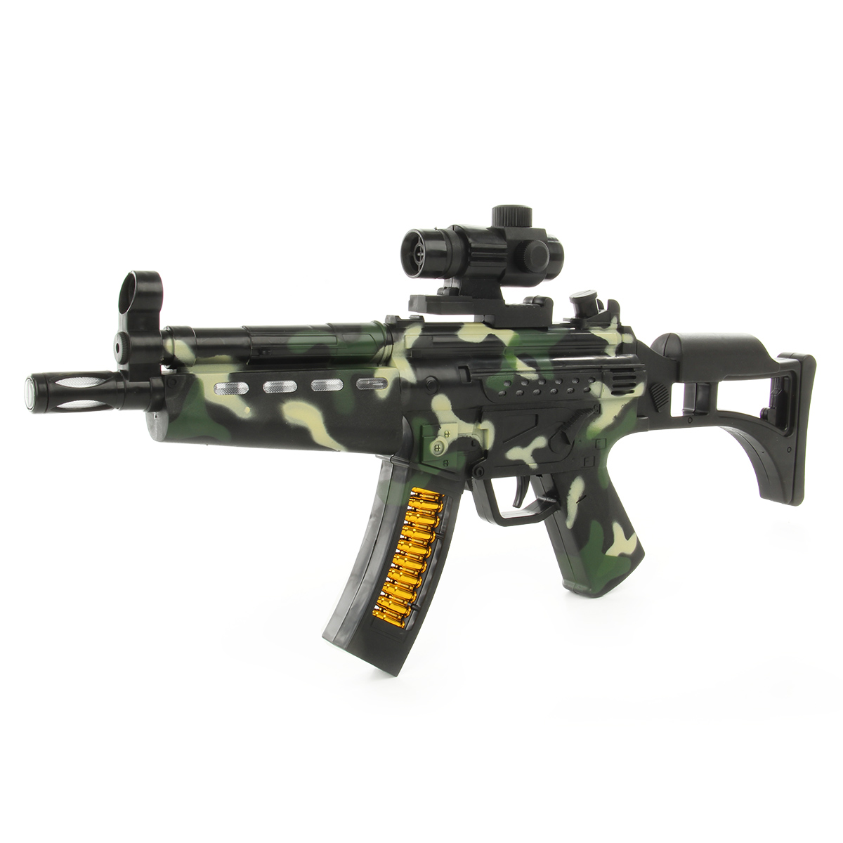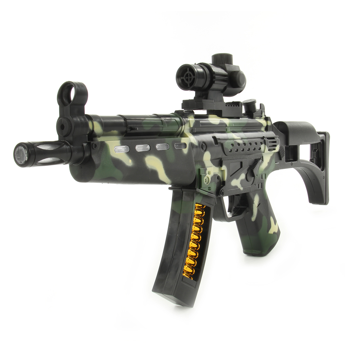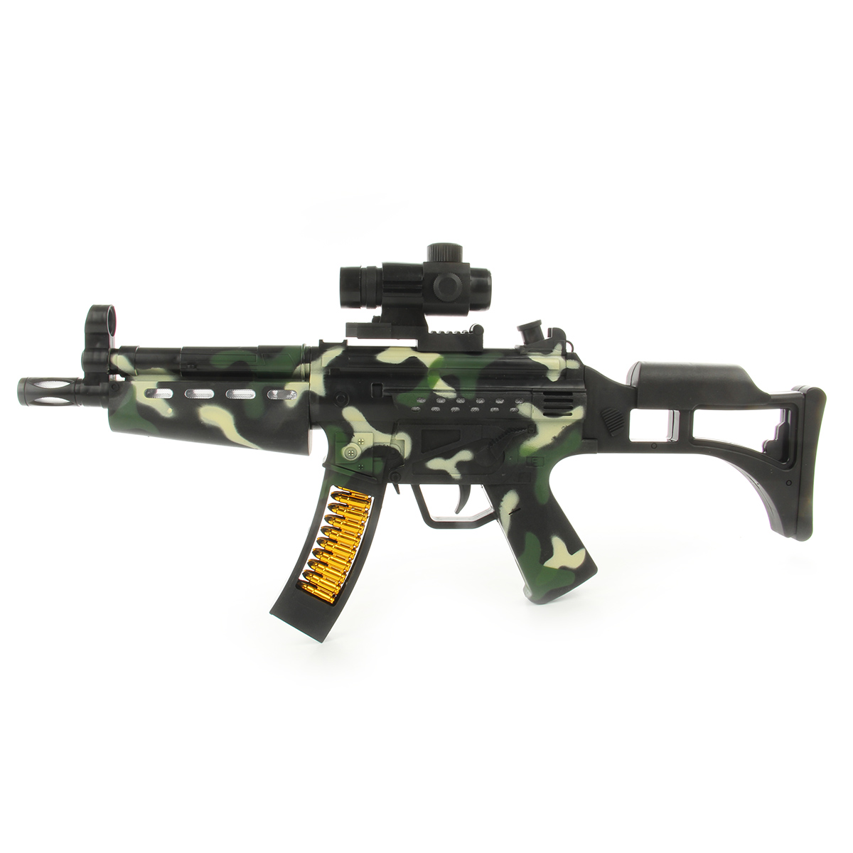 Игрушечное оружие с подсветкой и звуками стрельбы.