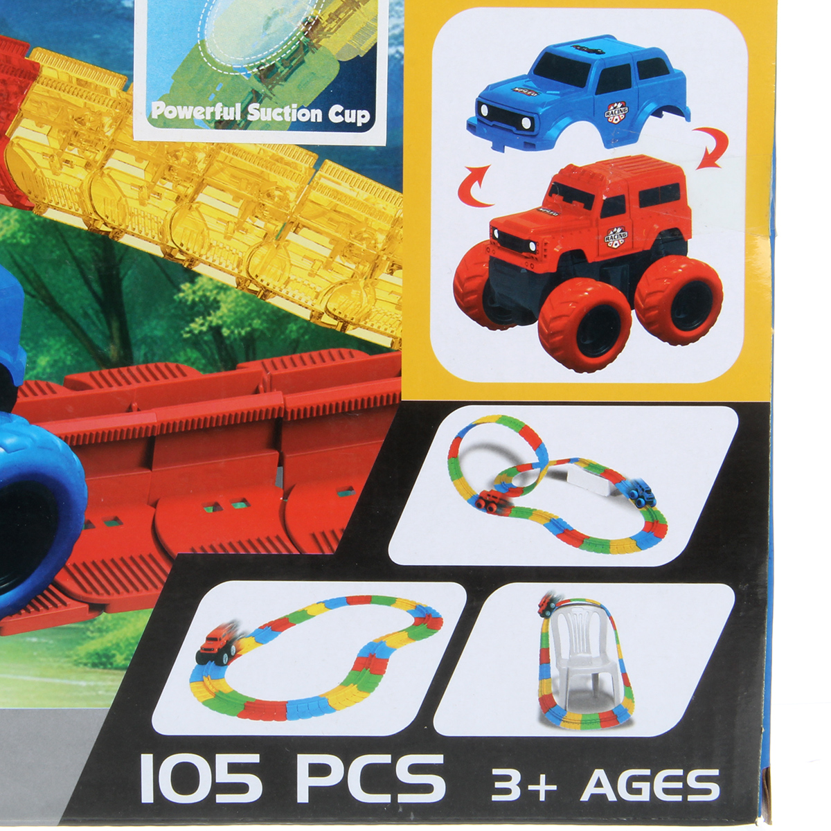 В комплекте имеются специальные присоски, обеспечивающие лучшее сцепление трека с поверхностью.