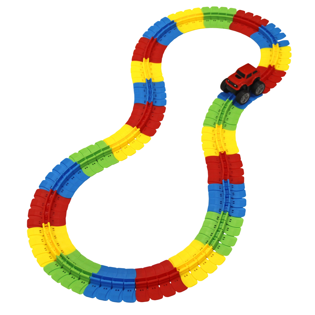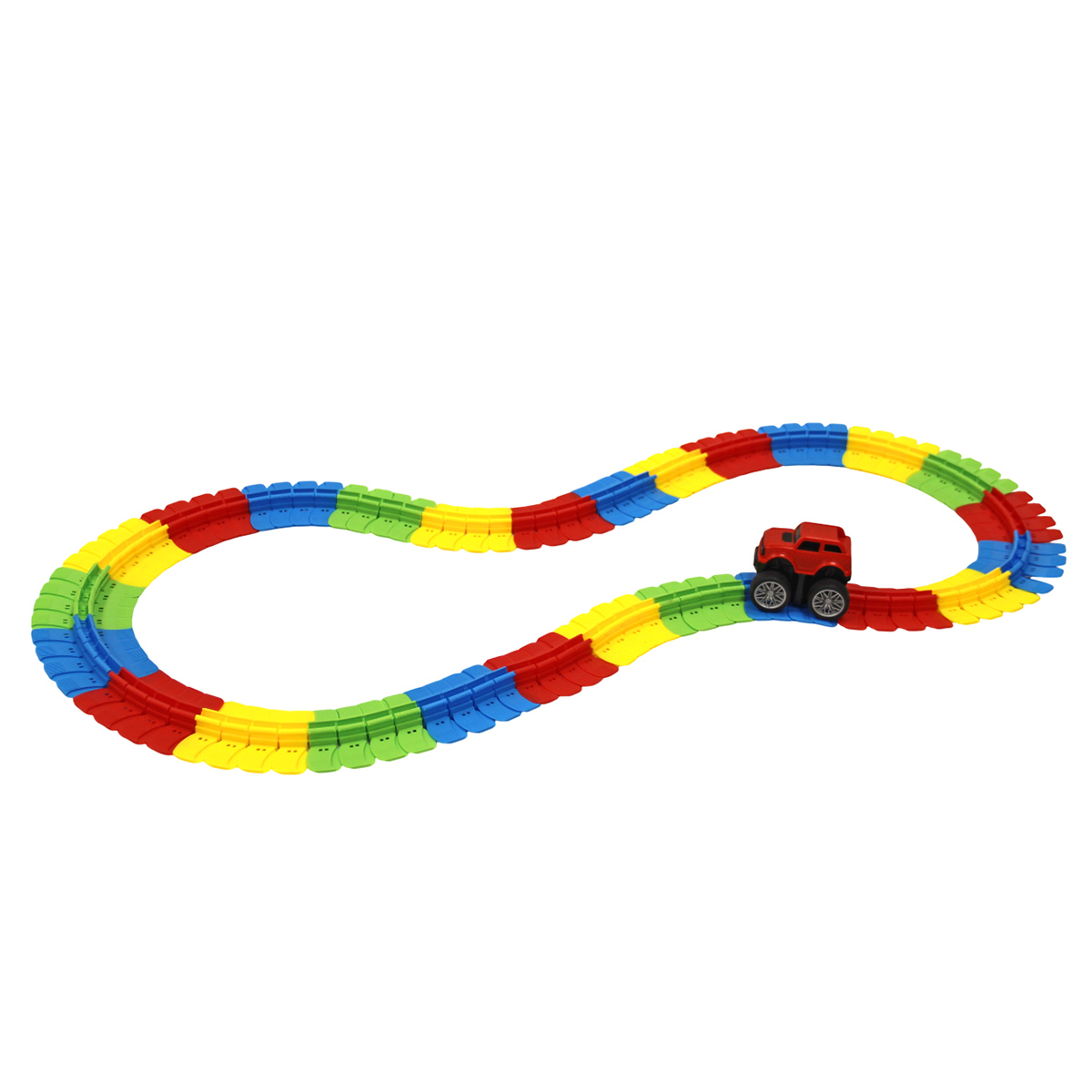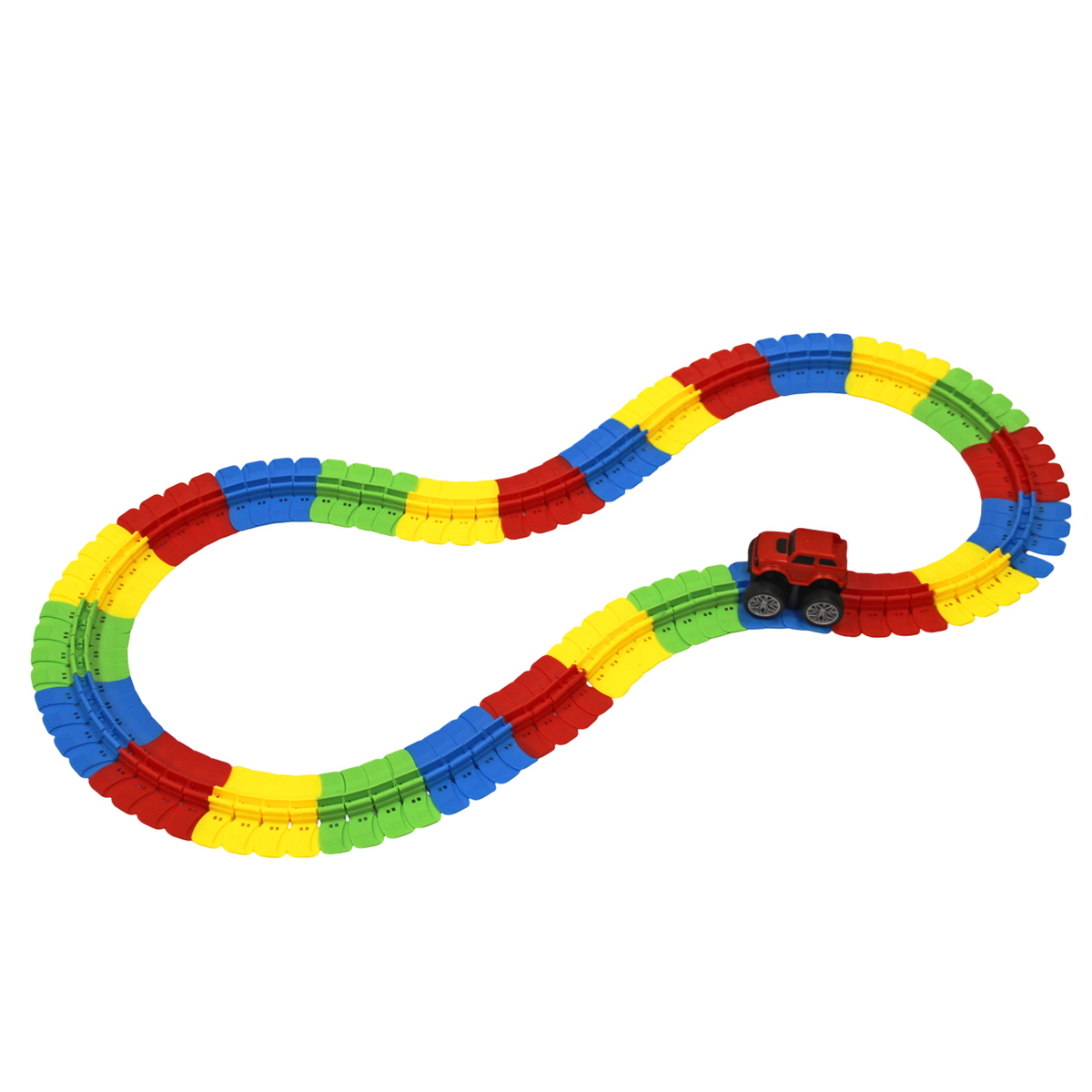 Детали трека крепятся друг с другом, гибкие, можно придать треку разные формы.
