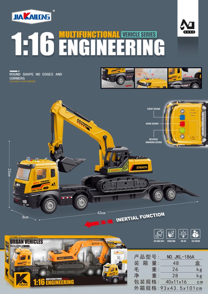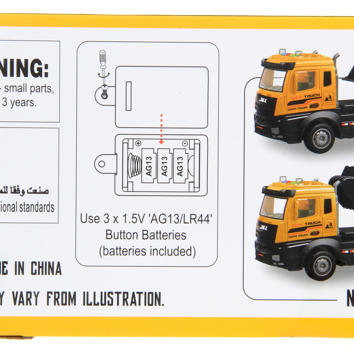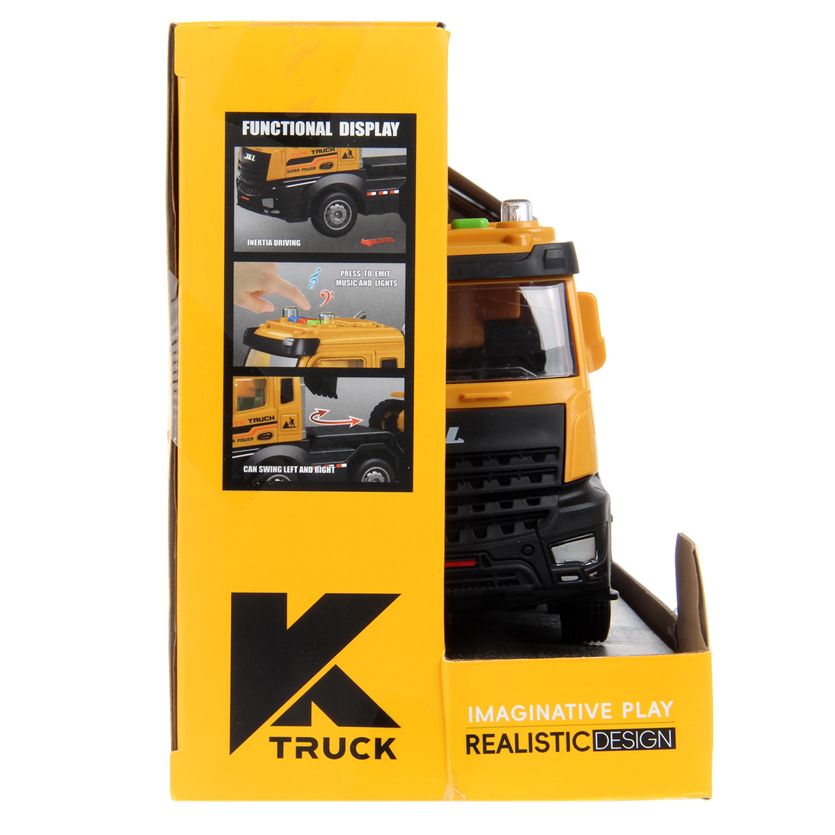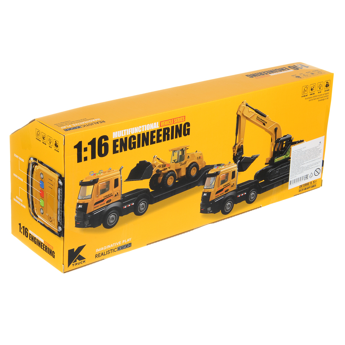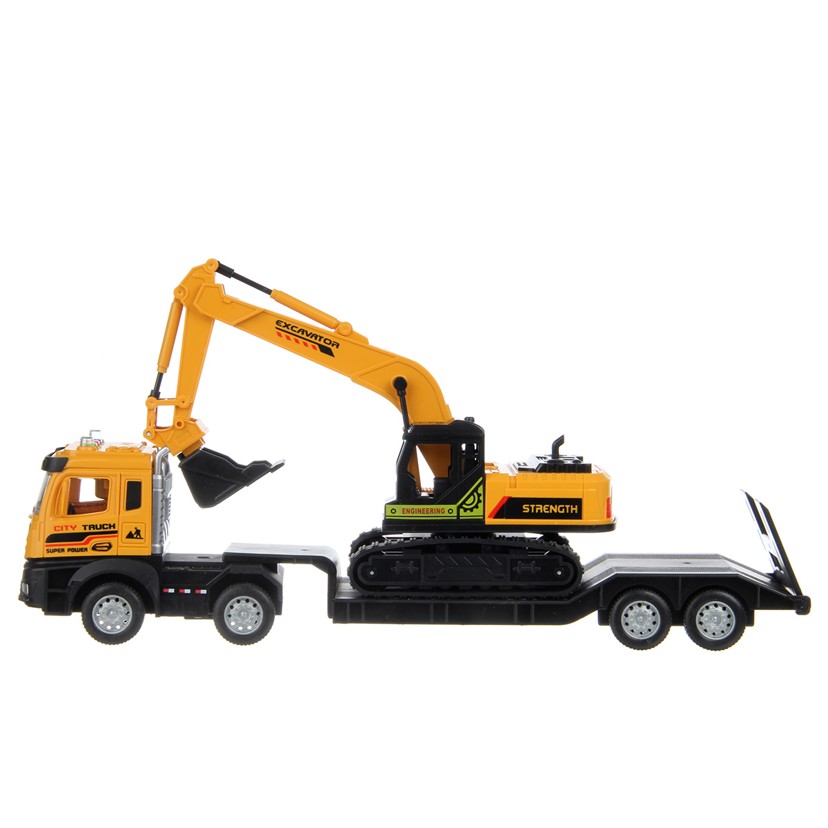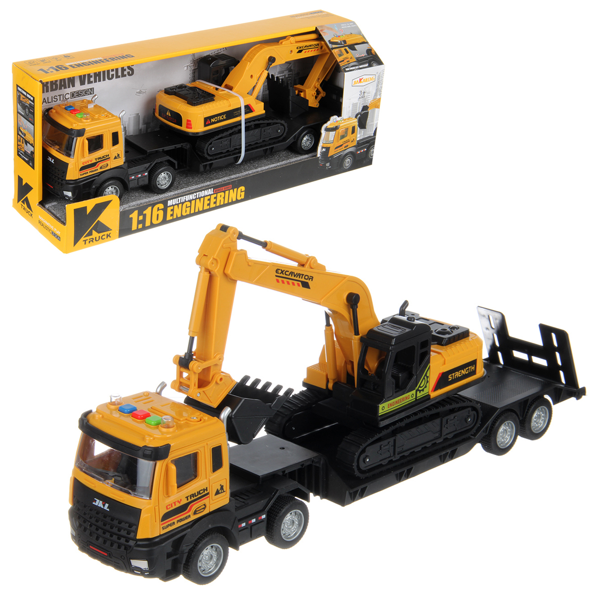 Фрикционная машинка со звуковыми эффектами, красивой подсветкой лампочек и подвижными деталями. Игрушка тягач с платформой с прорезиненными колесами, игрушечная спецтехника выполнена в реалистичном дизайне и красивой расцветке. Игрушечный транспорт изготовлен из прочных и долговечных материалов. Игрушечная машина станет замечательным подарком на Новый год и День рождения, поставляется в красивой упаковке.