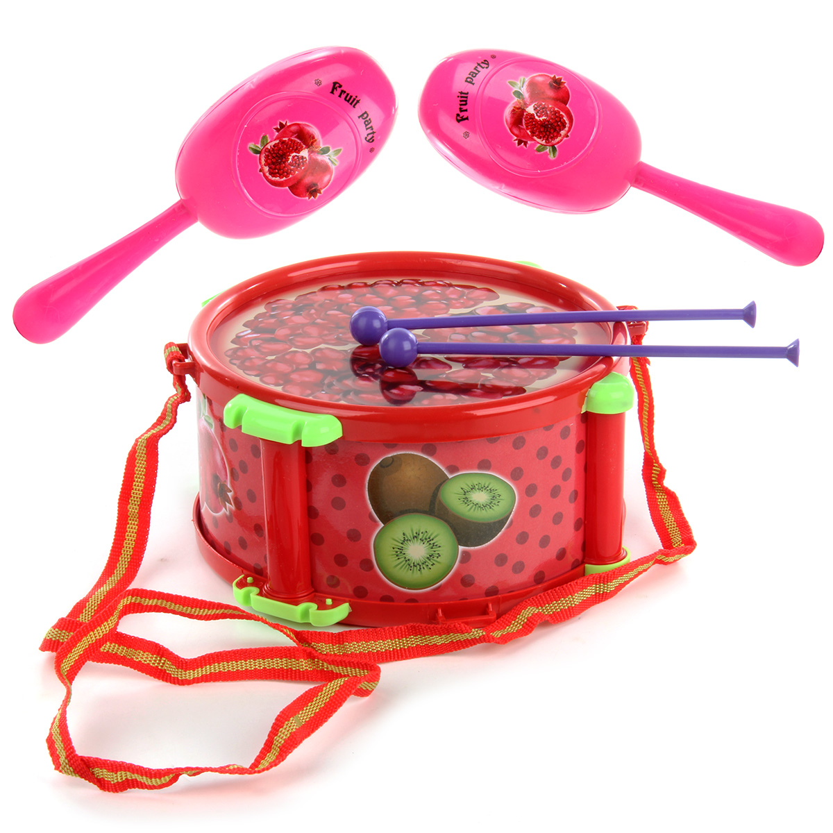 Замечательный музыкальный дуэт, состоящий из барабана с барабанными палочками и маракасов, понравится каждому юному меломану. Маракасы издают звук, если их потрясти, у барабана удобный ремешок, можно повесить барабан на плечо. Игрушка развивает артистические способности, воображение, слуховое и зрительное восприятие, координацию движений, мелкую моторику рук, знакомит с миром музыкальных инструментов. Игрушка оформлена в яркой цветовой гамме и отличается интересным дизайном. Игрушка представлена в ассортименте. Игрушка изготовлена из качественного и безопасного полимерного материала, упакована в пакет с картонным хедером. Размеры барабана: 18*18*9 см. Размеры маракаса: 15*4*5 см. Длина барабанной палочки: 15,5 см. Размеры игрушки в упаковке: 27*9*30 см.
