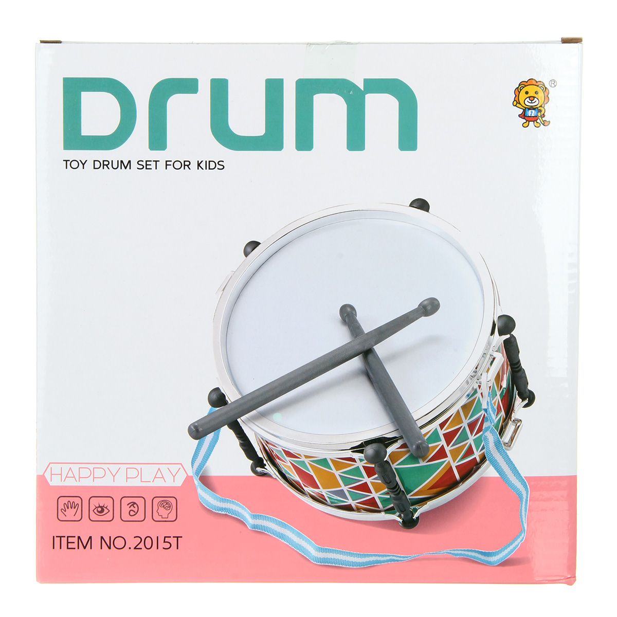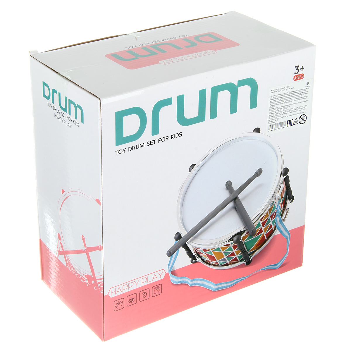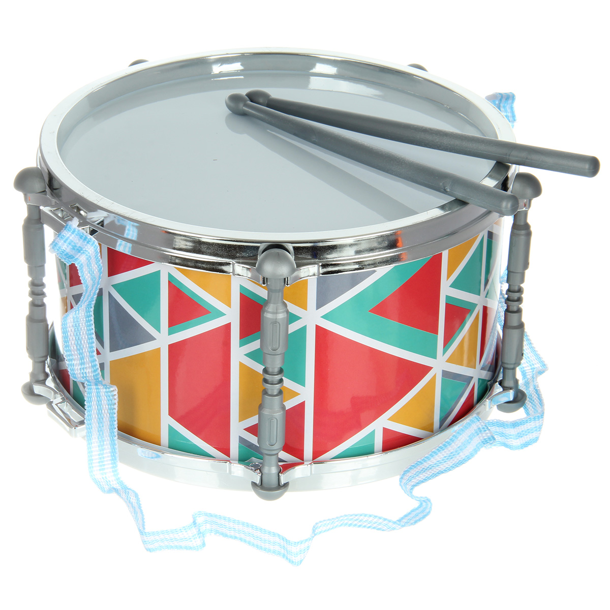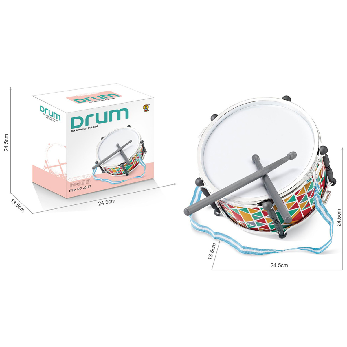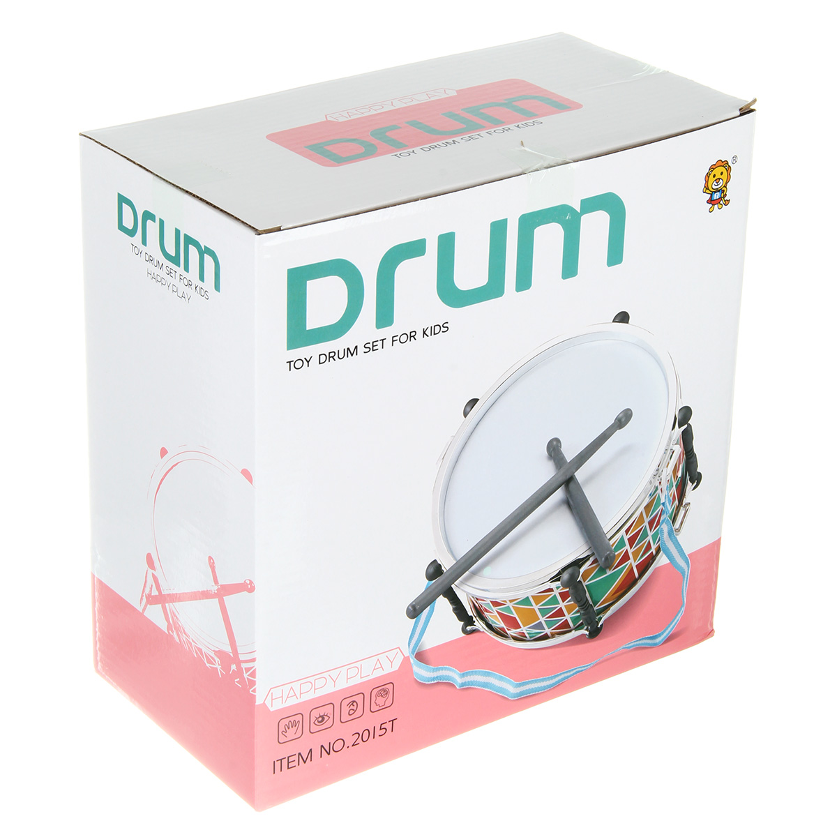 Игрушечный барабан с палочками и ремешком в комплекте. Барабан детский изготовлен из долговечных материалов, выполнен в красивом дизайне. Игрушка барабан в компактном размере, удобно брать с собой. Музыкальная игрушка станет замечательным подарком девочке, мальчику на Новый год, День рождения.