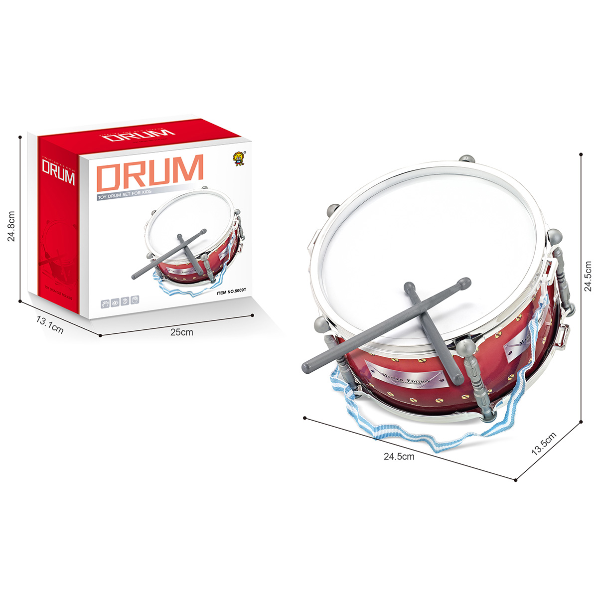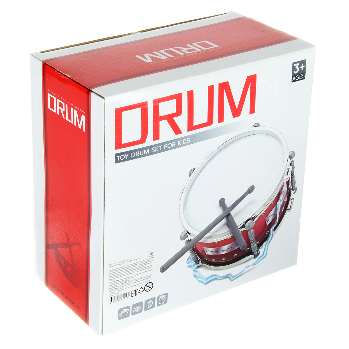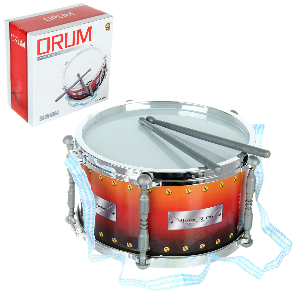 Игрушечный барабан с палочками и ремешком в комплекте. Барабан детский изготовлен из долговечных материалов, выполнен в красивом дизайне. Игрушка барабан в компактном размере, удобно брать с собой. Музыкальная игрушка станет замечательным подарком девочке, мальчику на Новый год, День рождения.