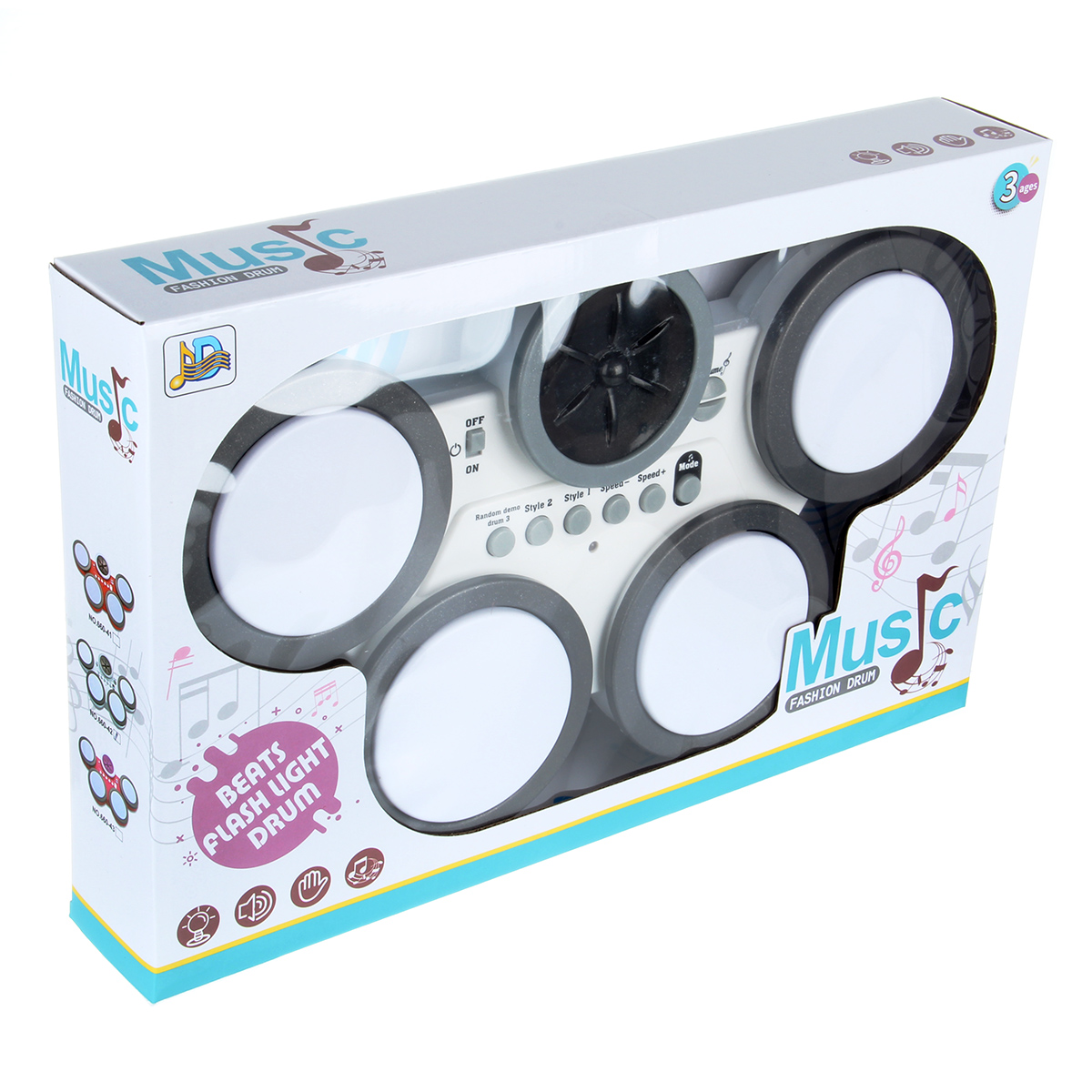 2. Стайл 1 и 2, проигрывает мелодии, более 3 мелодий, нажатием на большие кнопки накладывается звук барабанов. Большие кнопки издают различные звуки барабанов.